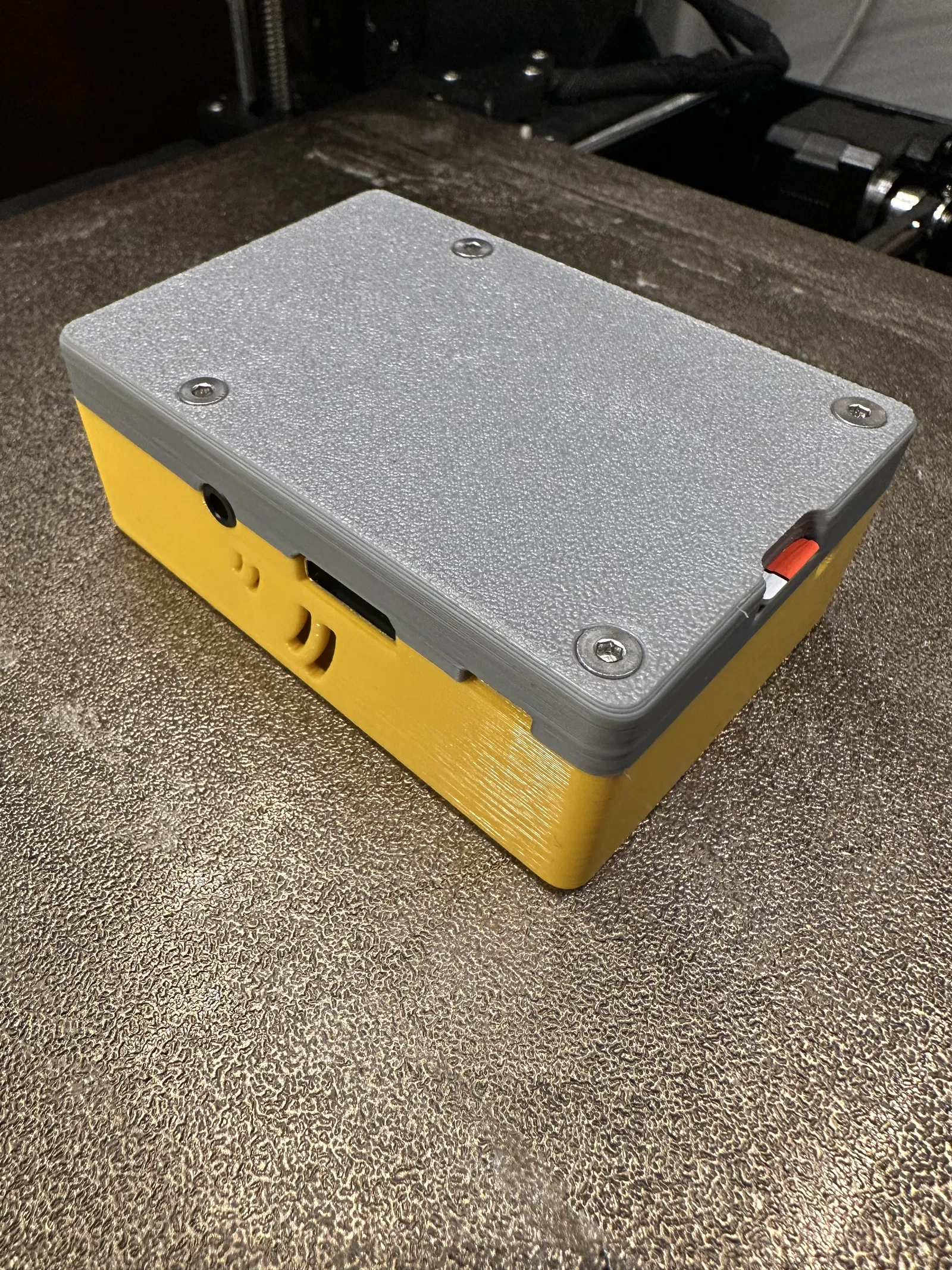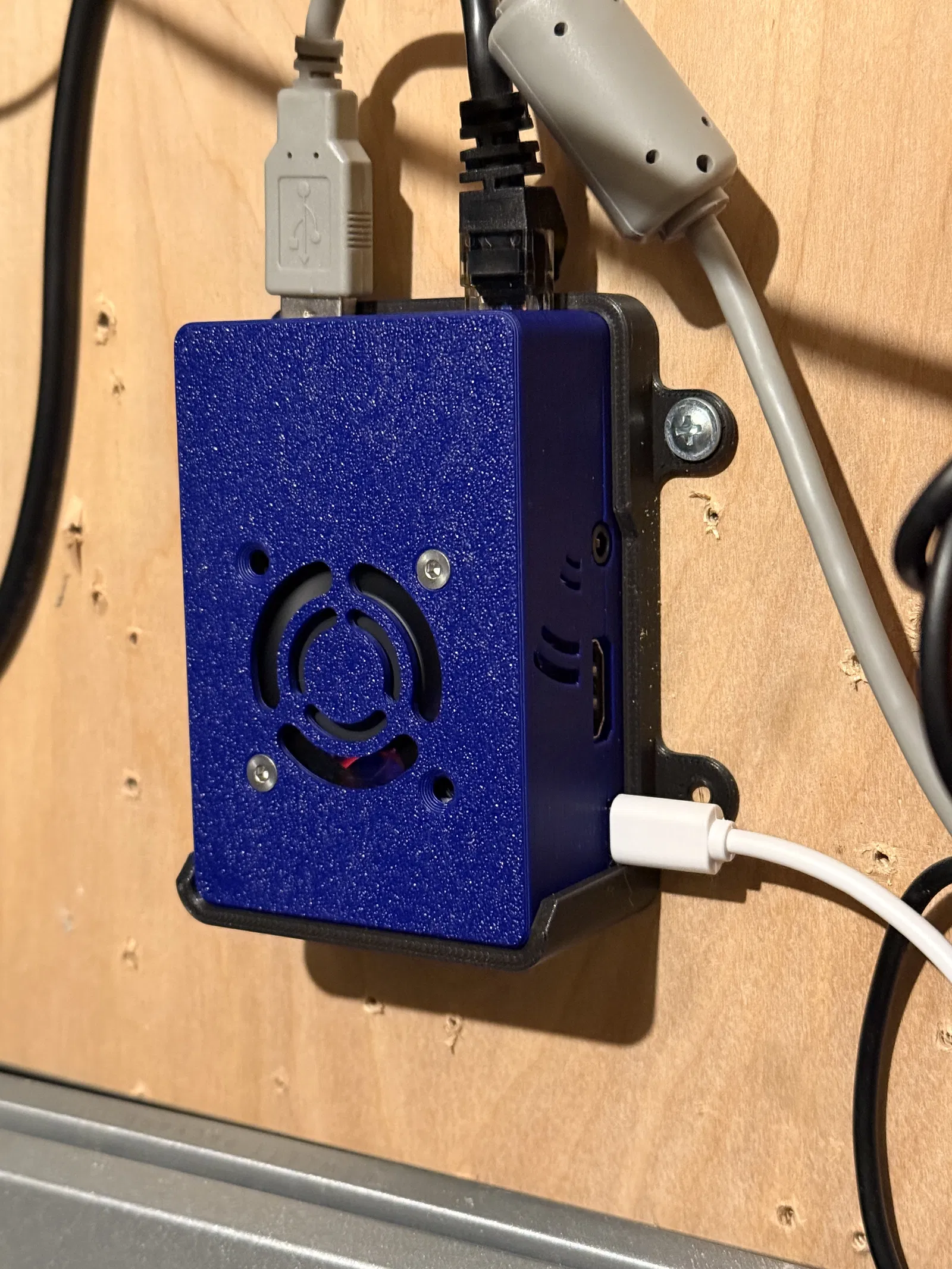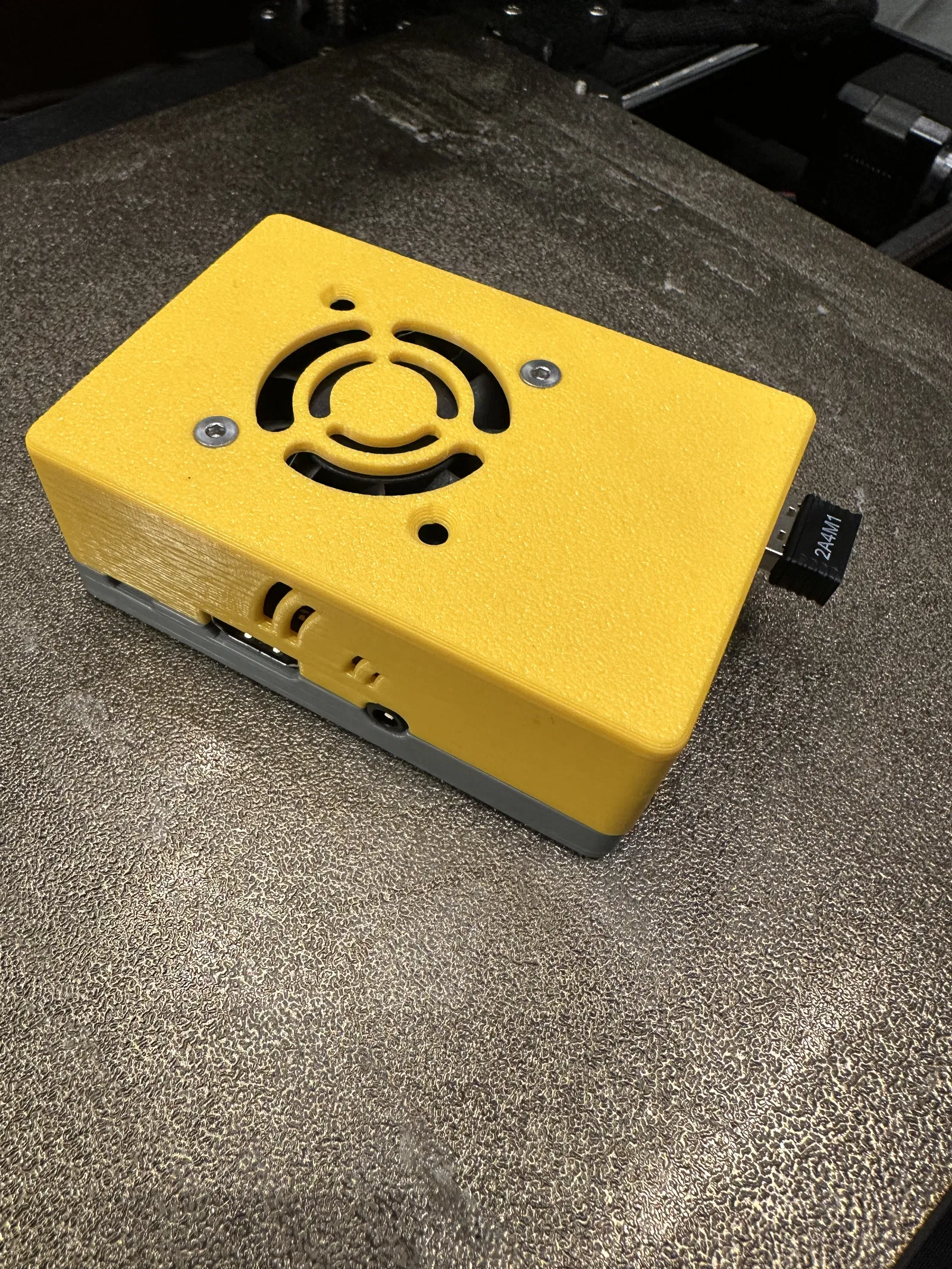 Phần trên có khoét cho quạt 40mm x 40mm với lỗ vít cỡ cho ốc M3. Có các khoét khác xung quanh vỏ để cho phép các kết nối dây khác nhau trên bo mạch được luồn ra bên ngoài vỏ.