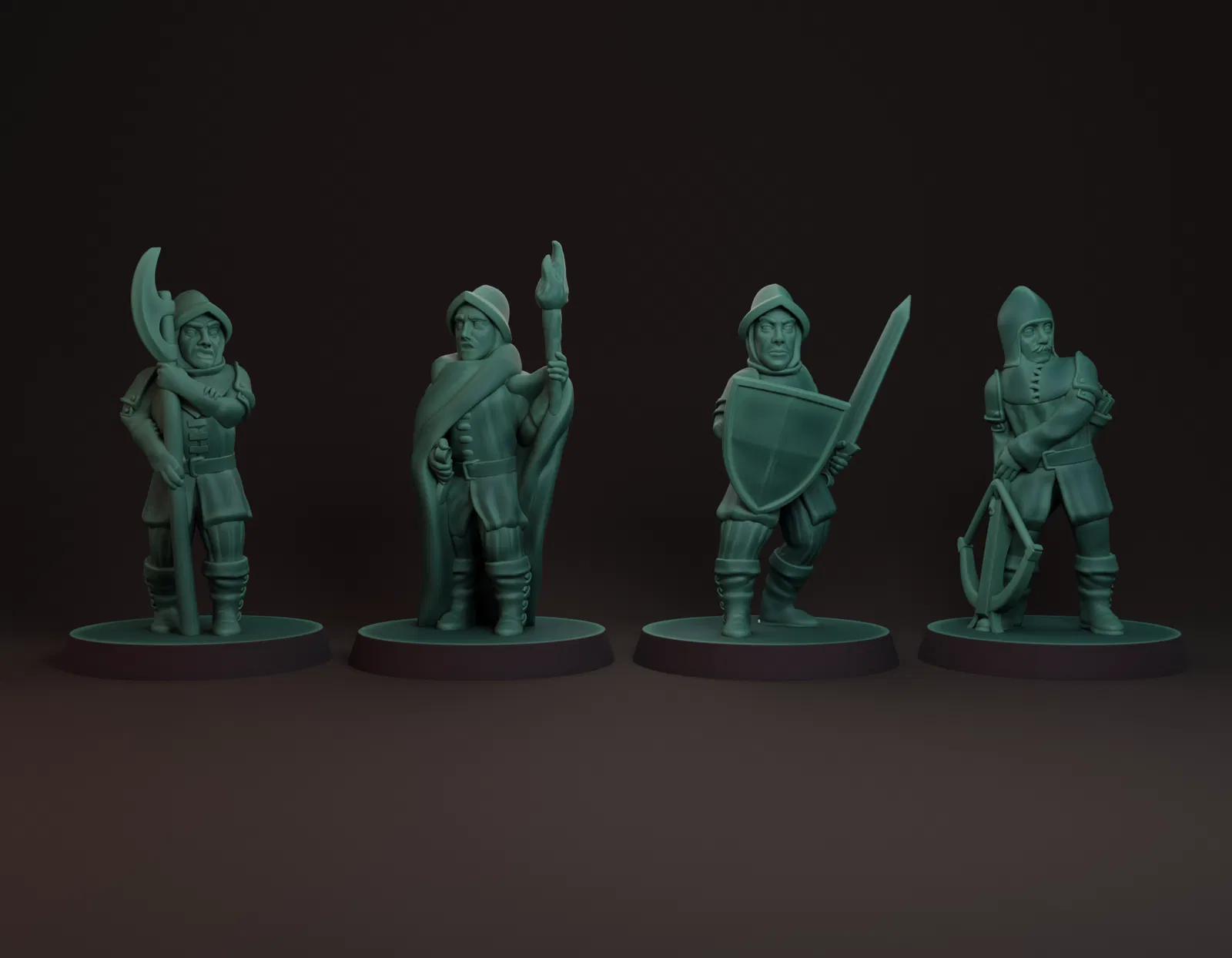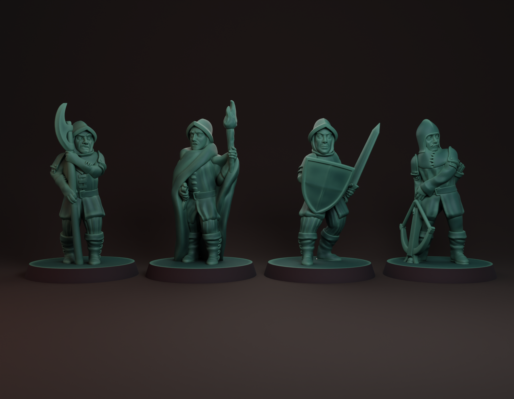 Đội Vệ Binh Thành Phố, kích thước 28mm, bao gồm Vệ sĩ, Lính cầm giáo, Kiểm lâm và Lính canh đêm. Tất cả đều được thiết kế để in không cần giá đỡ trên máy in FDM với đầu phun 0,2mm và chiều cao lớp 0,8mm. Chất liệu PLA. Máy in: Bambu Lab A1 Mini. Danh mục: Đồ Chơi & Trò Chơi.