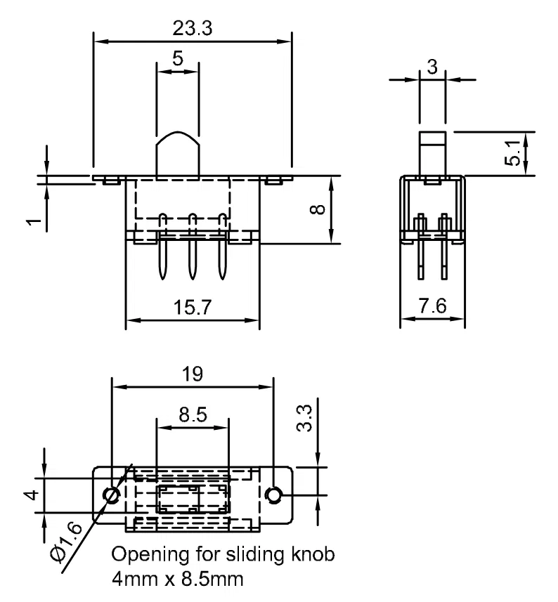 Kích thước công tắc pin được sử dụng có trong tài liệu. Nếu sử dụng công tắc khác, phần dưới cần điều chỉnh một chút.