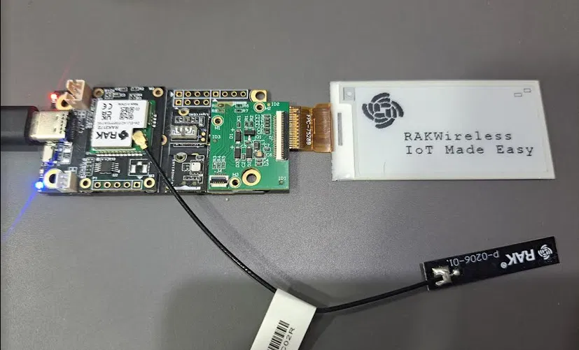 Sử dụng một module WisBlock Core tiết kiệm năng lượng như RAK3372 hoặc RAK4631 cho phép chạy cảm biến bằng pin trong thời gian dài. Màn hình e-paper RAK14000 hiển thị thông tin cảm biến liên quan và MCU gửi dữ liệu cảm biến qua giao tiếp LoRa/LoRaWAN.