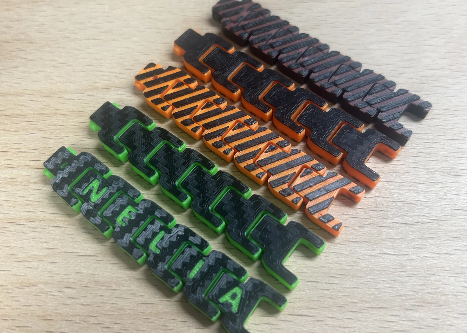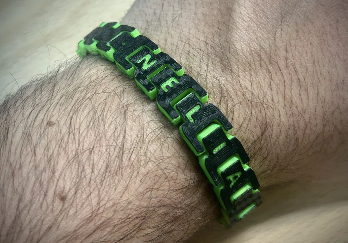 Vòng tay với thiết kế đường kẻ mới và các bộ phận chữ cái tùy chỉnh, có thể in với một hoặc hai màu đơn giản. Không cần MMU. Bản remix có thêm họa tiết đường kẻ và cho phép in chữ cái tùy chỉnh, giúp chiếc vòng tay trở nên độc đáo và cá nhân hóa hơn.