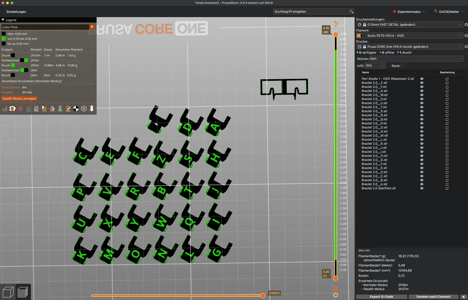 Việc thêm chữ cái yêu cầu thay đổi màu filament đơn giản, giúp tăng thêm hiệu ứng thị giác và làm cho vòng tay trở nên thực sự độc đáo.
