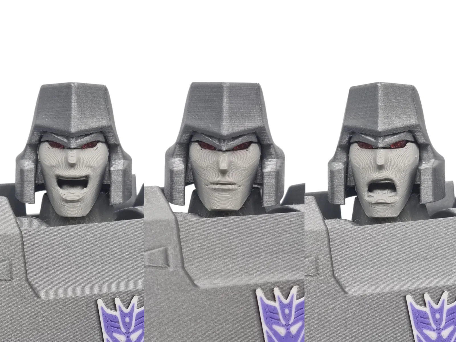 Mô hình MEGATRON Khớp Nối V2, lấy cảm hứng từ Transformers Devastation. Thiết kế đẹp mắt, tỉ lệ 1:1, cao 21CM, có nhiều phụ kiện và biểu cảm. Cần in khớp bằng TPU, độ khó trung bình, cần keo. Có link đến ngai vàng và IG của người làm.