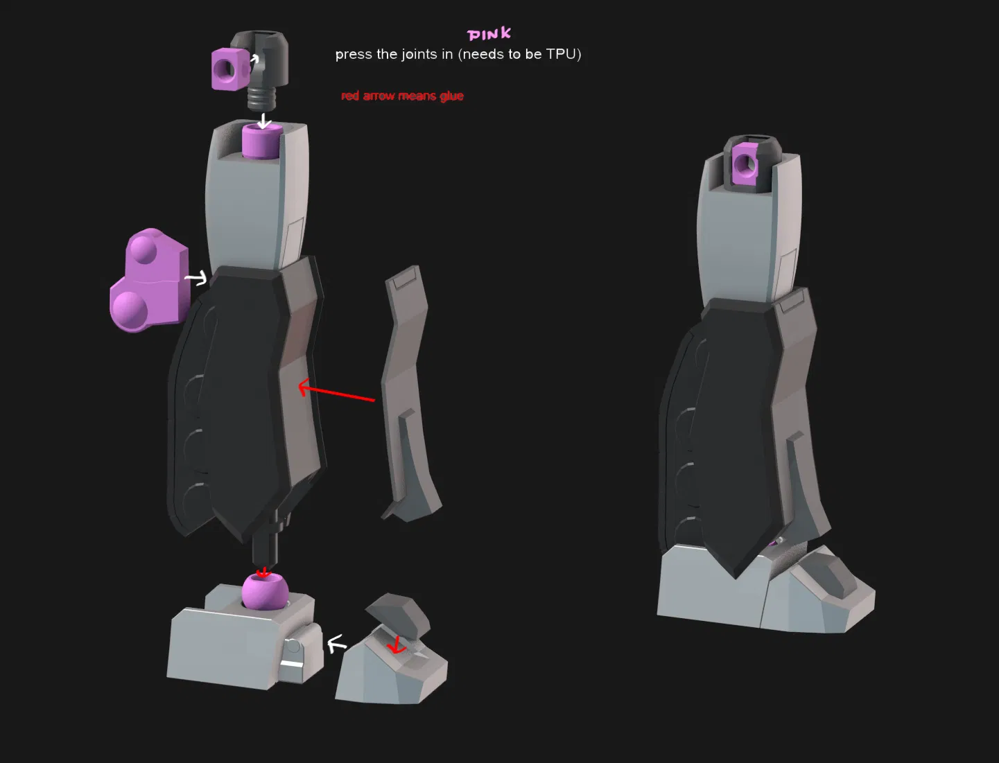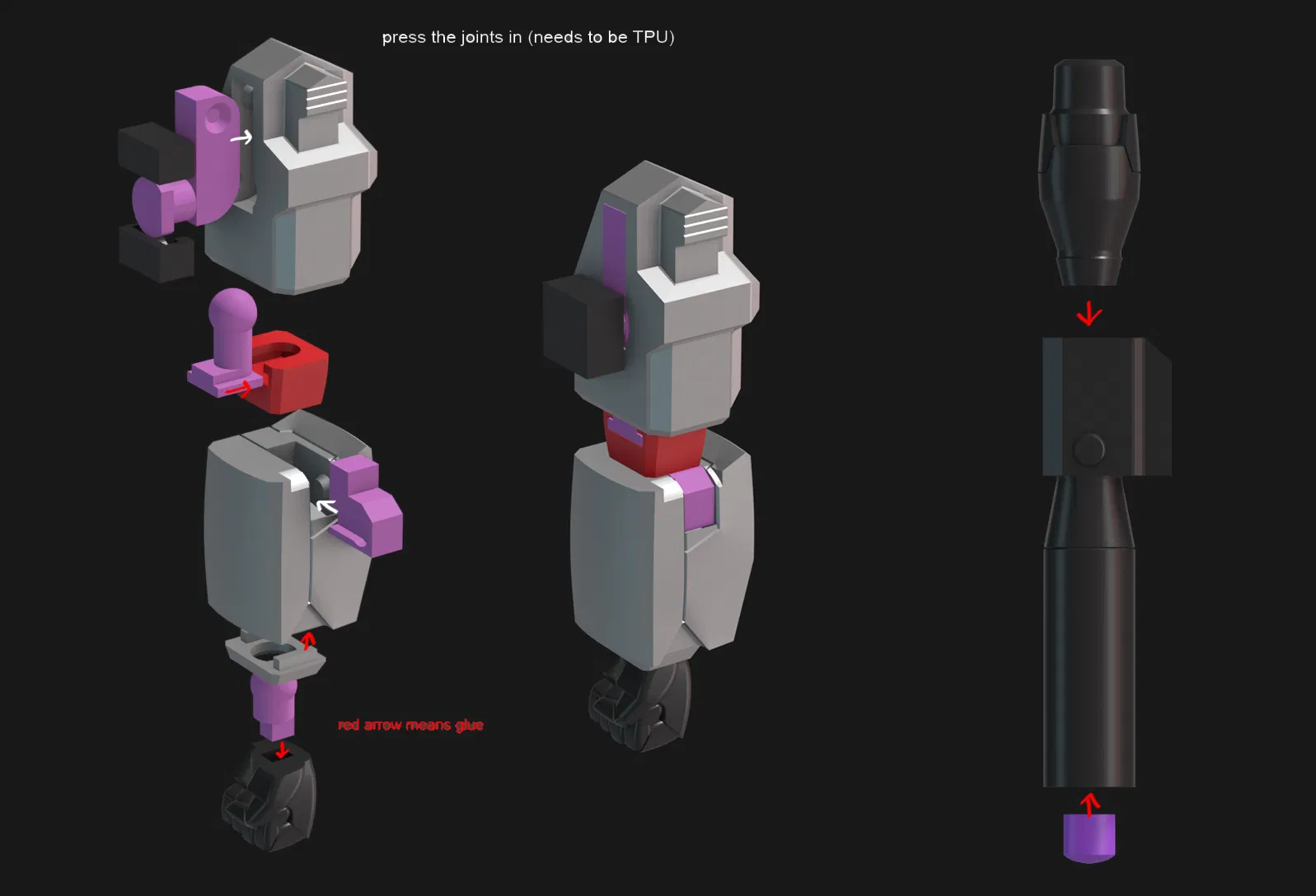 - Bắt buộc phải in tất cả các khớp nối bằng TPU (được ký hiệu bằng vật liệu màu hồng trong không gian làm việc)
