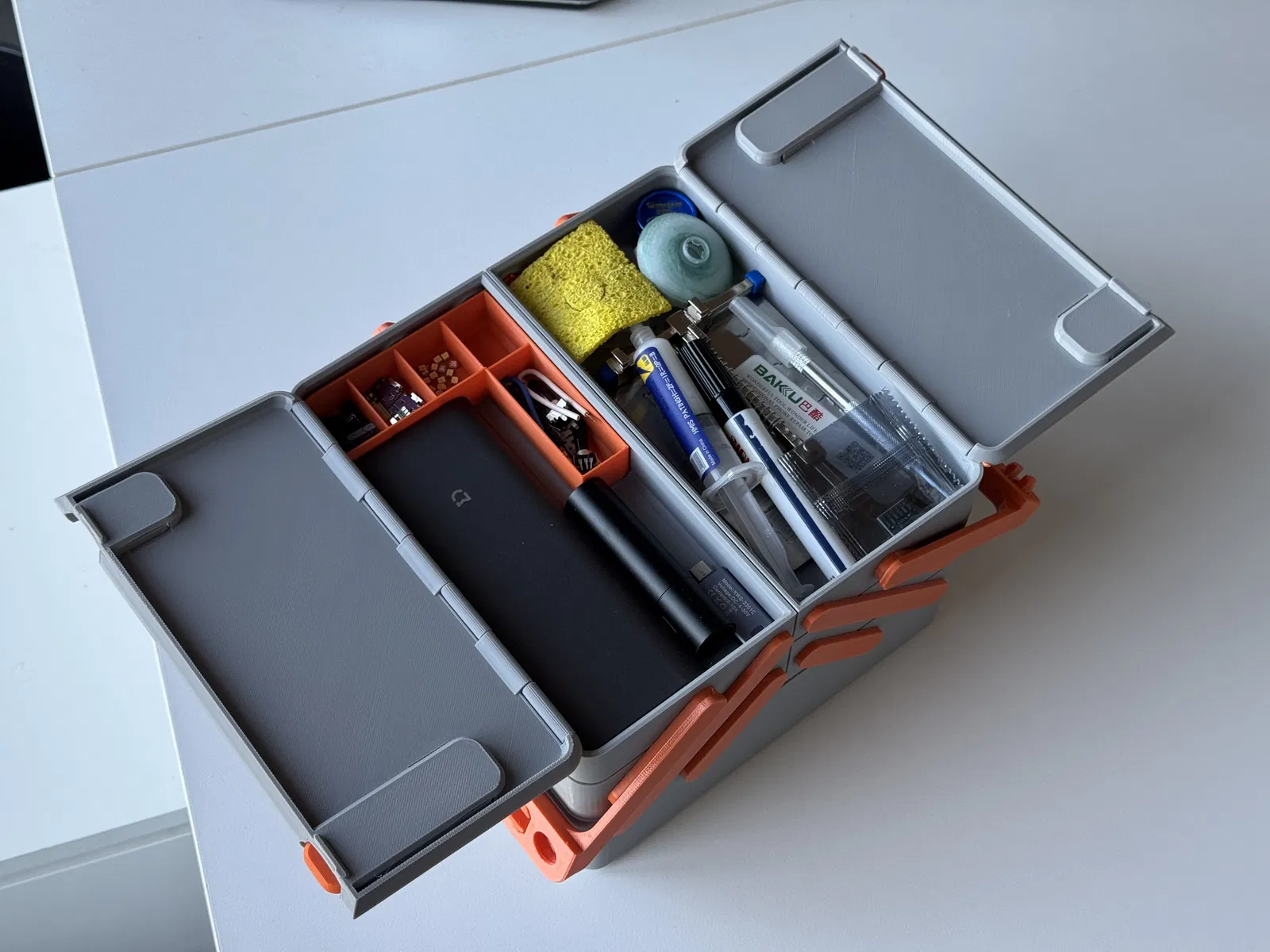 Giới thiệu hộp dụng cụ cantilever mới nhất, thiết kế cứng cáp chỉ cần in 3D, không cần kim loại. Có thể tùy chỉnh kích thước từ 120x120 đến 400x400. Dễ dàng lắp ráp và cất giữ, lý tưởng để mang theo đồ nghề.
