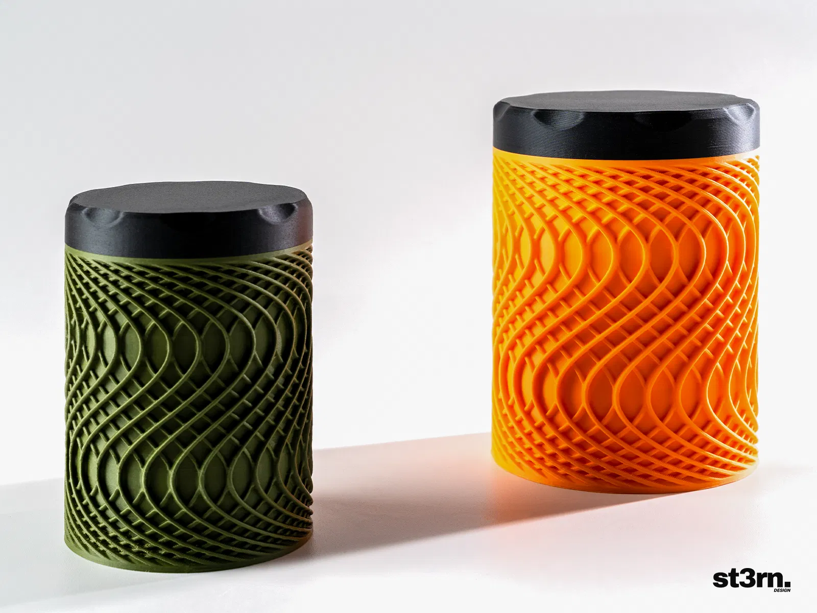 Hộp đựng Moire ⬝ Container với thiết kế độc đáo, có các đường cong moire mềm mại và nắp xoáy tiện lợi. Kích thước đa dạng, cài đặt in tối ưu cho PLA và các vật liệu khác. Lý tưởng cho việc lưu trữ và trang trí.