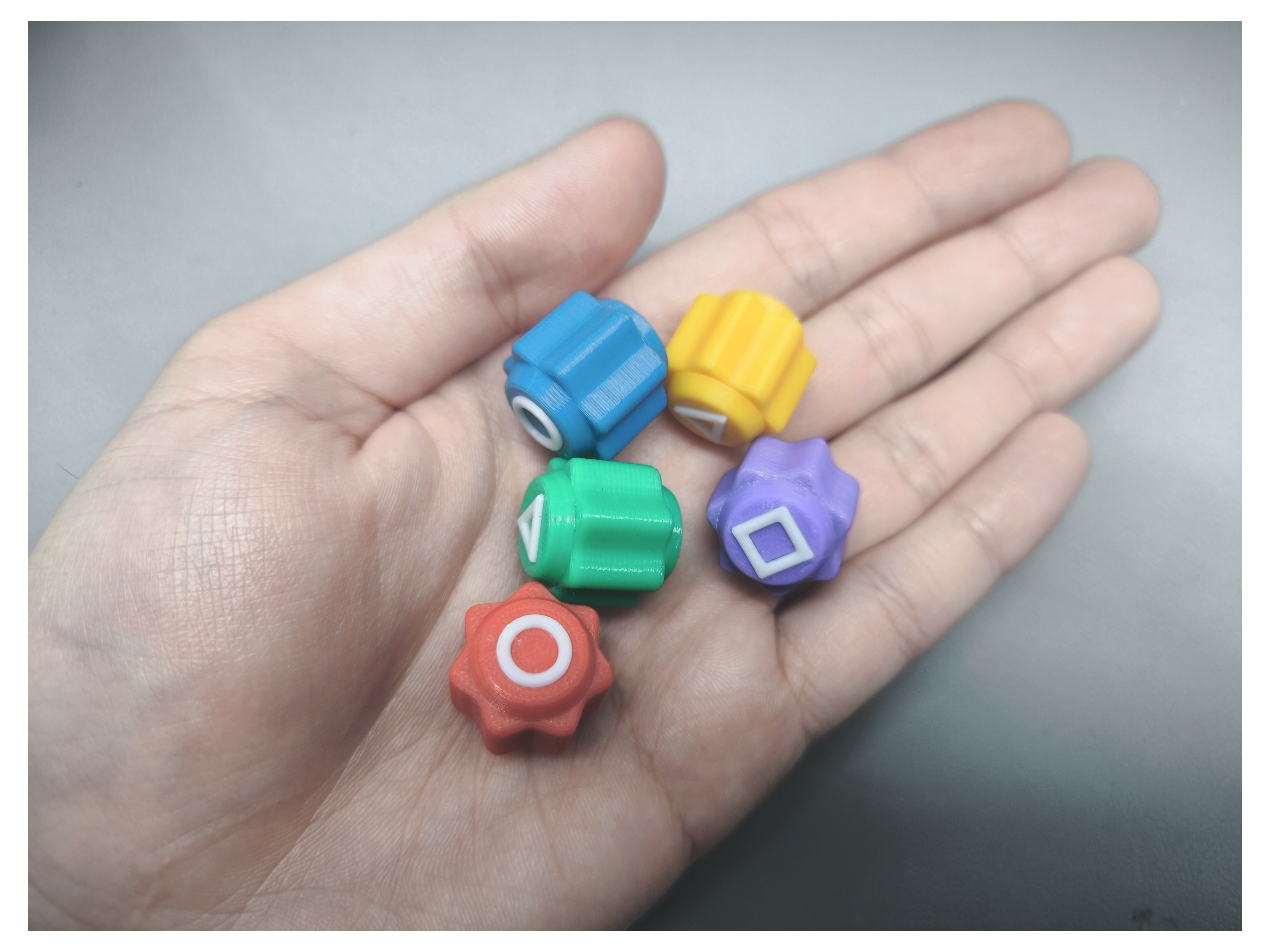 Xem xét phản hồi của mọi người, tôi đã thêm một hộp đựng có thể đóng lại, 3 phiên bản nắp và thân hộp. V1 ………... Phiên bản đầu tiên của hộp. V2 ..……… Phiên bản thứ hai của hộp. Logo ..….. Nắp có chỗ để các viên đá. Below ..... Hộp đựng mà bạn có thể dễ dàng lấy các viên đá ra bằng ngón tay thay vì lắc. V2 không khớp với V1!
