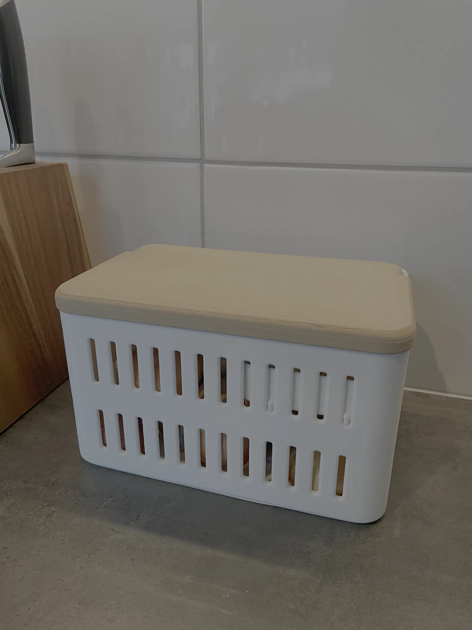 Cái rổ nhỏ gọn này dùng để đựng hành, tỏi, gừng và các loại rau củ nhỏ khác trong bếp. Mô hình gồm ba phần: cái rổ, cái nắp và một cái khay lồng vào bên trong. Cái khay và cái nắp đều khớp chặt nhờ phần vành rổ có độ đàn hồi.