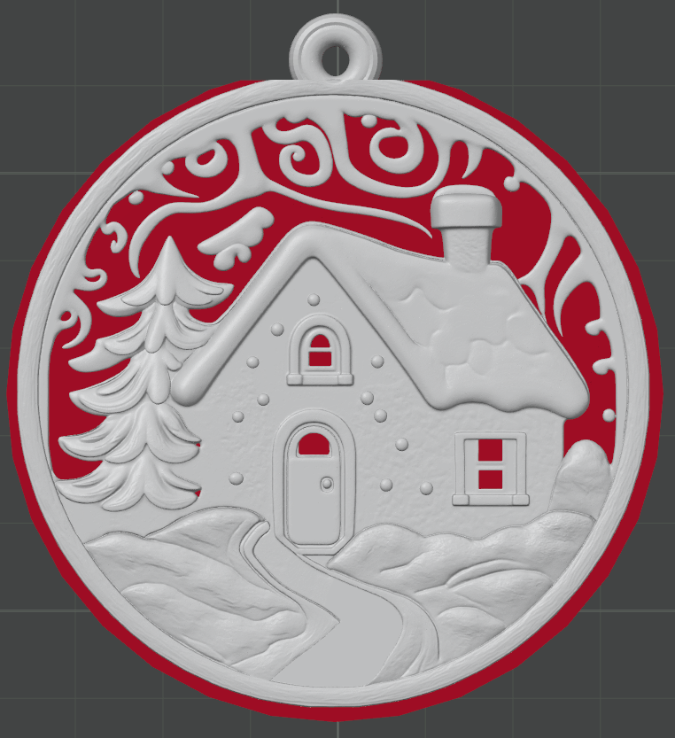 Một ngôi nhà mùa đông với họa tiết tuyết rơi và không khí lễ hội ấm cúng. Được thiết kế để làm nổi bật chiều sâu trong in hai màu, rất lý tưởng cho cây thông Noel, quà tặng theo mùa và bộ trang trí theo chủ đề mùa đông.