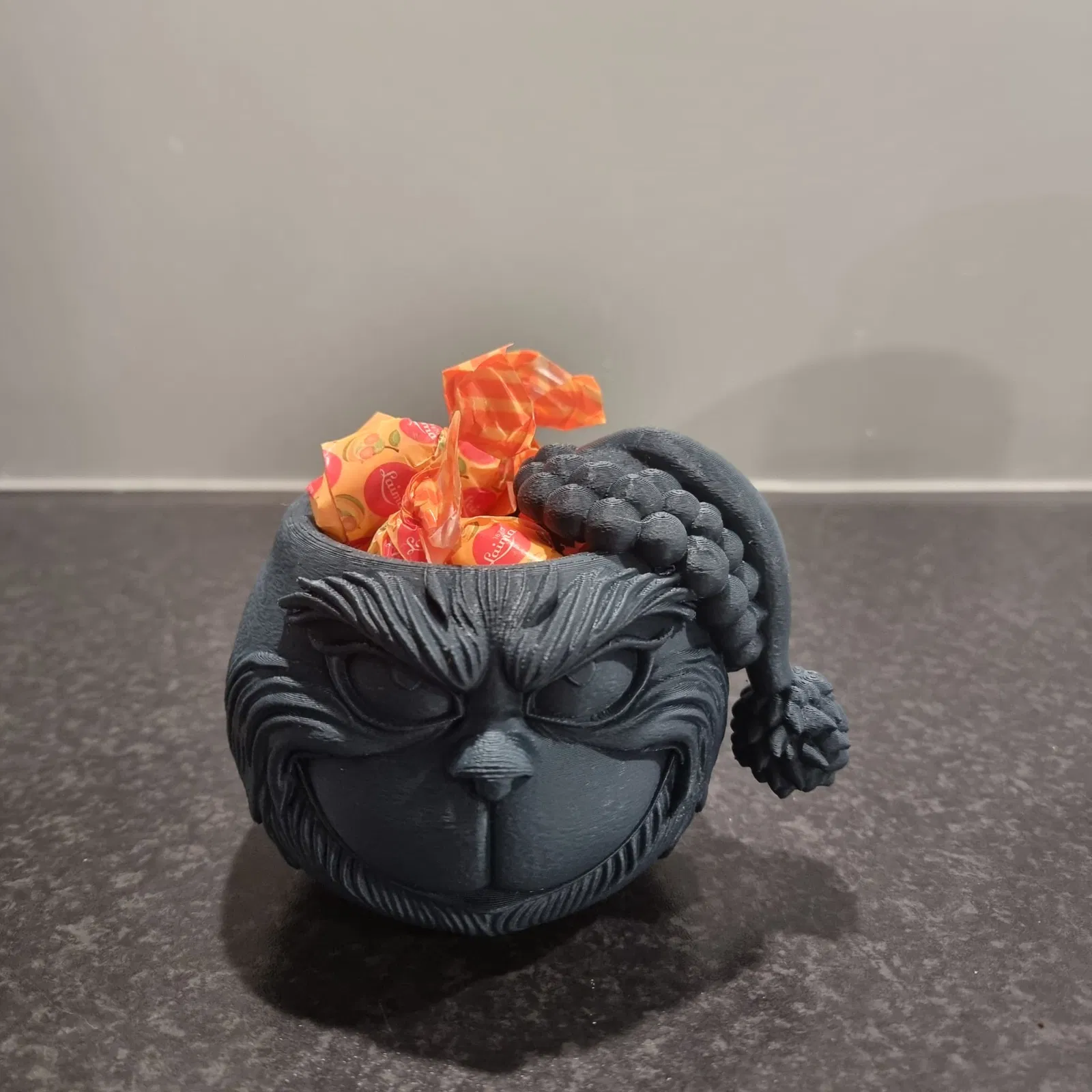 Hình dáng giống đầu của Grinch đội mũ ông già Noel đan len. Nó có vẻ mặt tinh ranh và hiện đang chứa đầy vài viên kẹo bọc màu cam và vàng sặc sỡ. Nó đóng vai trò như một món ăn trang trí, mừng lễ hội.