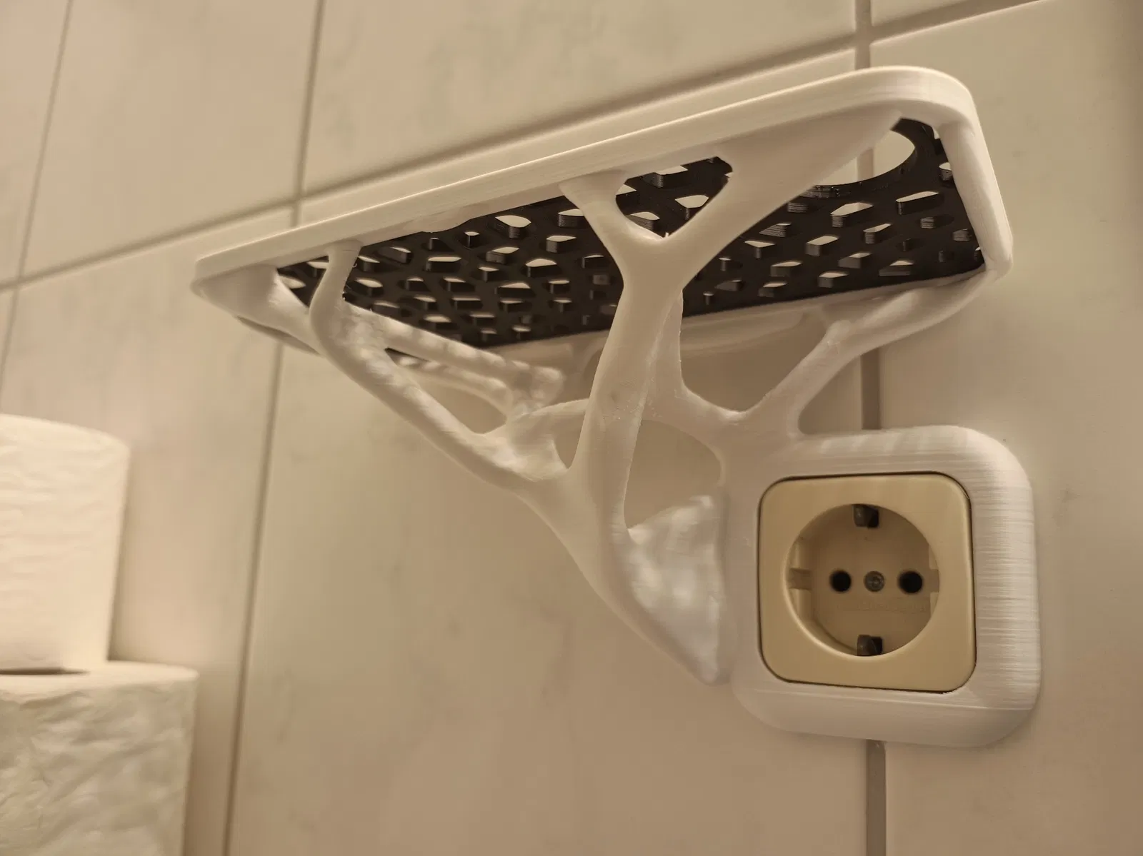 Tui muốn có thêm cái kệ trong nhà tắm, mà mấy cái miếng dán Command Strip tui mua để dán cái kệ in 3D lên gạch thì không chịu nổi sức nặng với độ ẩm.