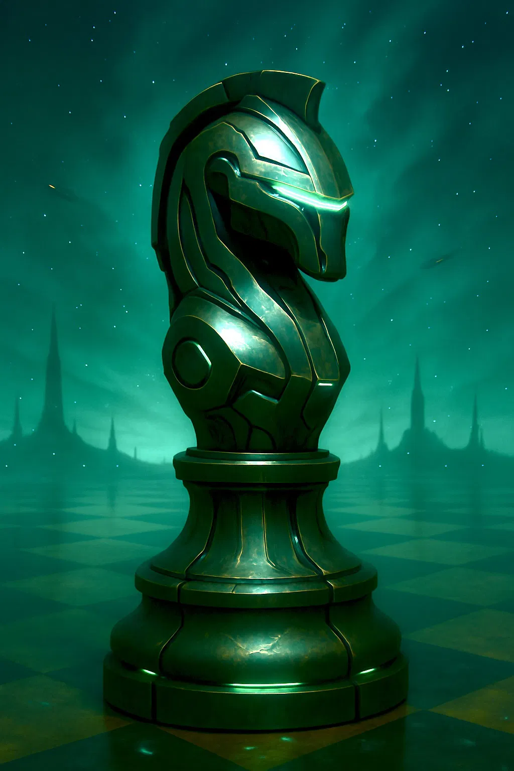 Kỵ Sĩ Bóng Đêm là quân Mã đến từ những góc khuất bị lãng quên của bàn cờ. Chiếc mũ trụ của nó được phủ đầy những ký tự bí ẩn không hề phản chiếu ánh sáng, và những sợi tơ u tối bốc lên từ chiếc áo choàng của nó, như thể nó đang dệt nên bóng tối của chính bàn cờ vậy. Nó di chuyển theo những bước nhảy phi logic – những đường chéo, những đường thẳng gãy khúc.
