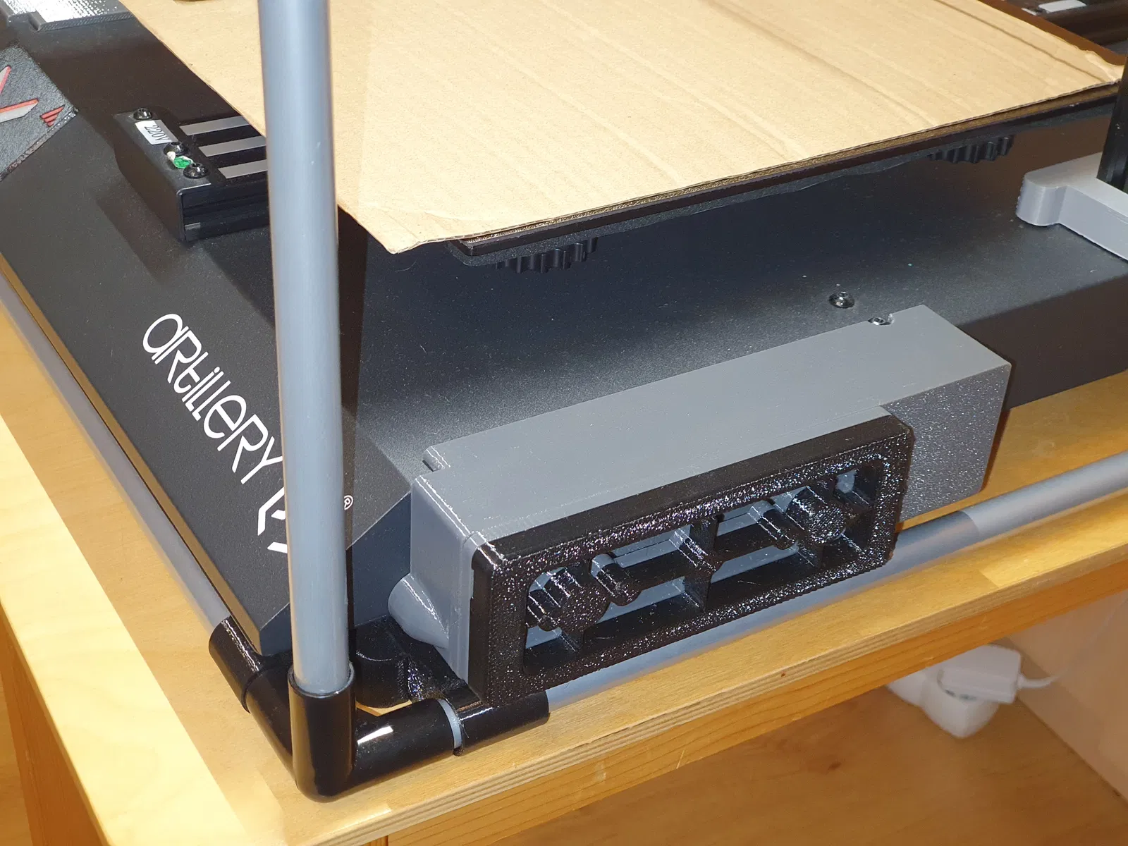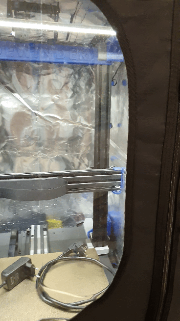 Dự án này bao gồm việc sửa đổi thùng kín nguyên bản để bộ phận điện tử có luồng khí riêng, tách biệt với không khí nóng trong khoang máy. Trong quá trình in nhiều giờ, nhiệt độ của bo mạch chủ máy in không vượt quá 38 độ C ở nhiệt độ phòng khoảng 23 độ C.