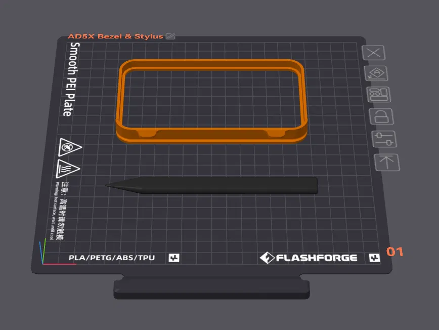 Nâng cấp trải nghiệm màn hình cảm ứng của bạn với bộ viền (bezel) và bút cảm ứng cho AD5X. Bộ phận này không chỉ tăng tính thẩm mỹ cho máy in mà còn giữ bút cảm ứng một cách gọn gàng, tiện lợi.