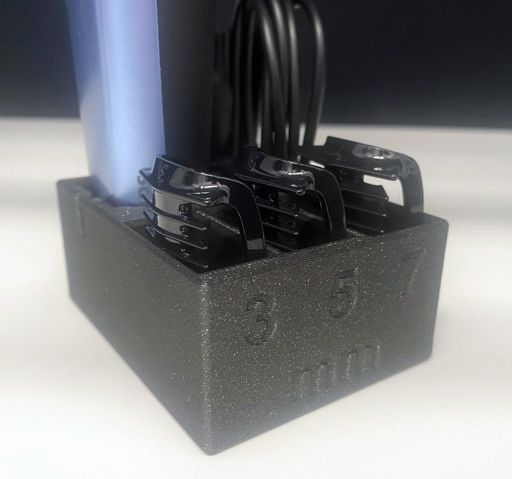 Chế tạo một giá đỡ tiện lợi cho máy cạo lông Philips Bodygroom Series 3000/5000, có đủ chỗ cho máy, dây sạc và các đầu đính kèm 3mm, 5mm, 7mm. Bản in 3D hoàn hảo, sử dụng vật liệu PLA với độ dày lớp in 0.2mm và infill 15%.
