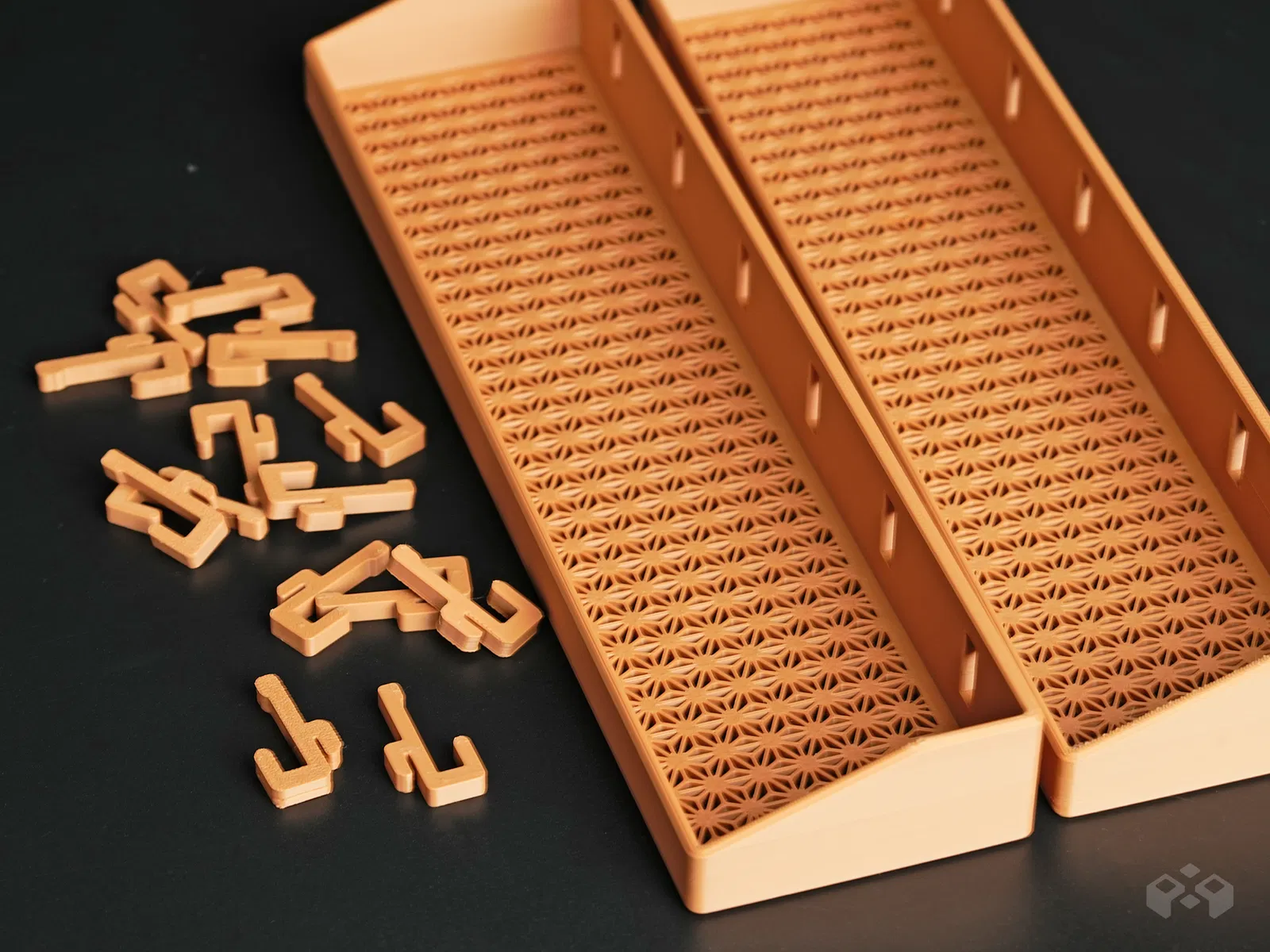 Mỗi món đều tuân theo thiết kế in không cần support để in 3D hiệu quả và dễ dàng lắp ráp bằng các móc đi kèm. Bề mặt khay tích hợp các họa tiết lấy cảm hứng từ Kumiko, kết hợp sức mạnh cấu trúc với nhịp điệu thị giác để tạo điểm nhấn trang trí tinh tế.