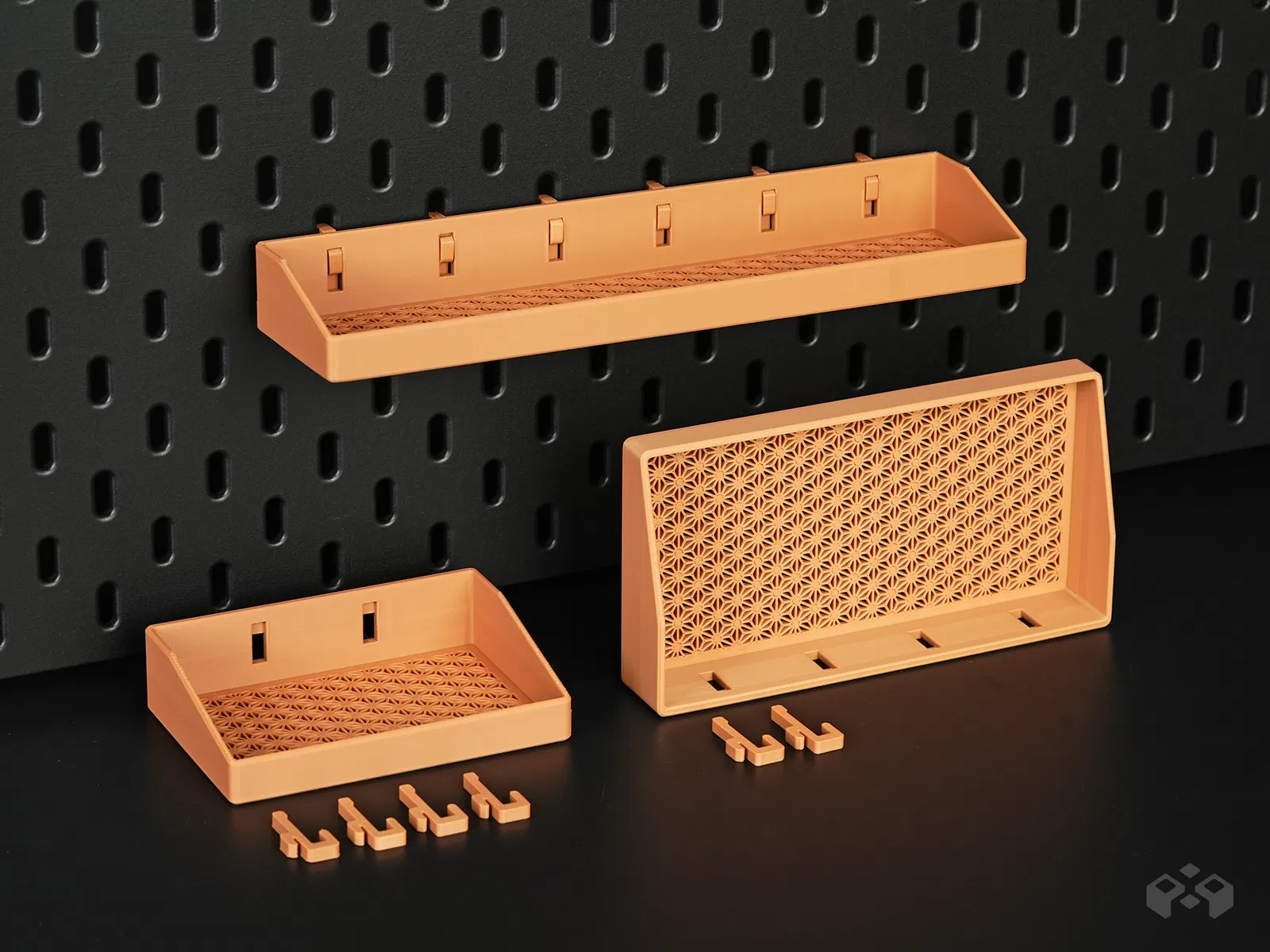 Khám phá cách sắp xếp vật dụng hàng ngày một cách thiết thực và tinh tế trên bảng SKÅDIS của bạn với bộ ba khay họa tiết Asanoha độc đáo. In không cần support, dễ lắp ráp.