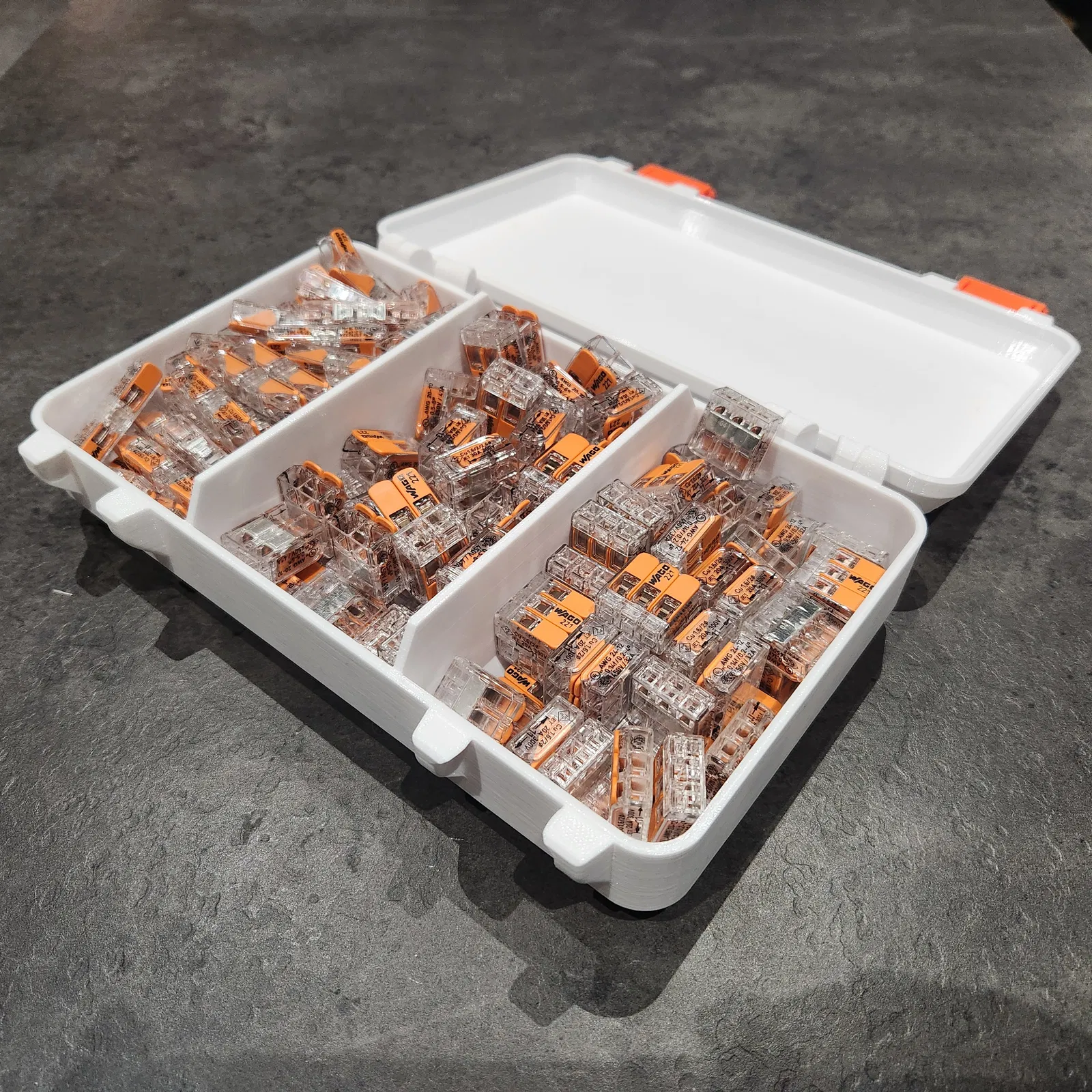 Hộp đựng Wago, chứa được 3 bộ, mỗi bộ 50 cái. Thiết kế dạng Snaplock tiện lợi, không cần ốc vít hay dung sai filament, dễ dàng lắp ráp và sử dụng. Lý tưởng để sắp xếp các bộ phận Wago một cách gọn gàng.