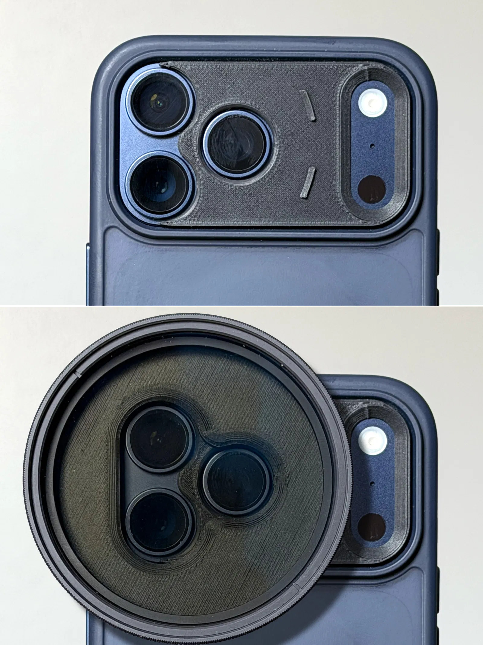 Giải pháp gắn filter 58mm hoặc 67mm lên iPhone 17 Pro và Pro Max bằng nam châm. Bao gồm đế gắn điện thoại và vòng gắn filter, chỉ cần 10 viên nam châm 10x2mm. Lưu ý in ren với layer height nhỏ và bật "Detect thin walls".