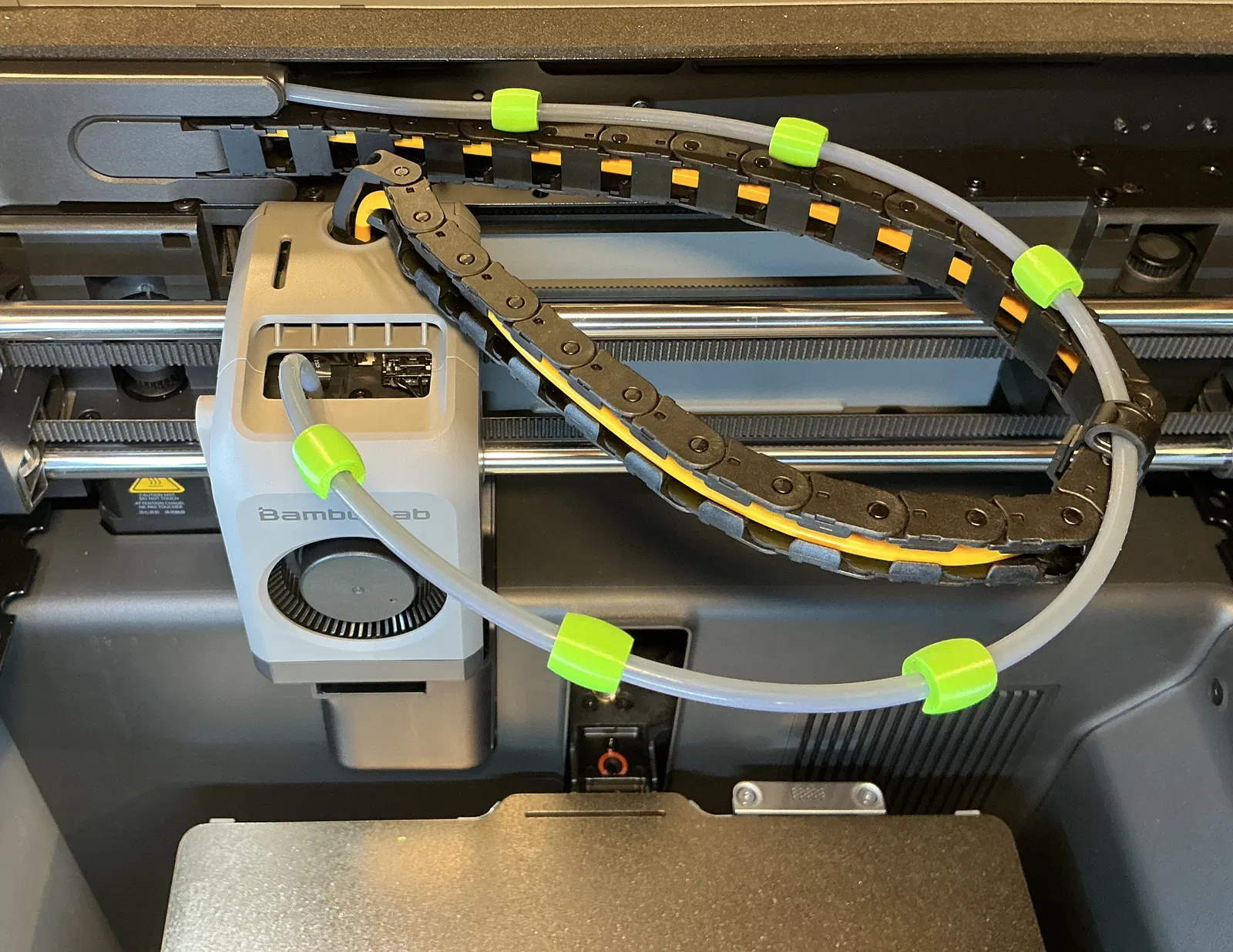 Chỉ cần phân bố 6 bộ phận bảo vệ này trên ống PTFE của bạn để che phủ các khu vực gần với tấm kính phía trên. Tôi đã in chúng bằng nhựa PETG màu xanh lá của BambuLab. Nếu vì bất kỳ lý do gì mà chúng không vừa, chỉ cần điều chỉnh tỷ lệ phóng to hoặc thu nhỏ một chút trong slicer của bạn!