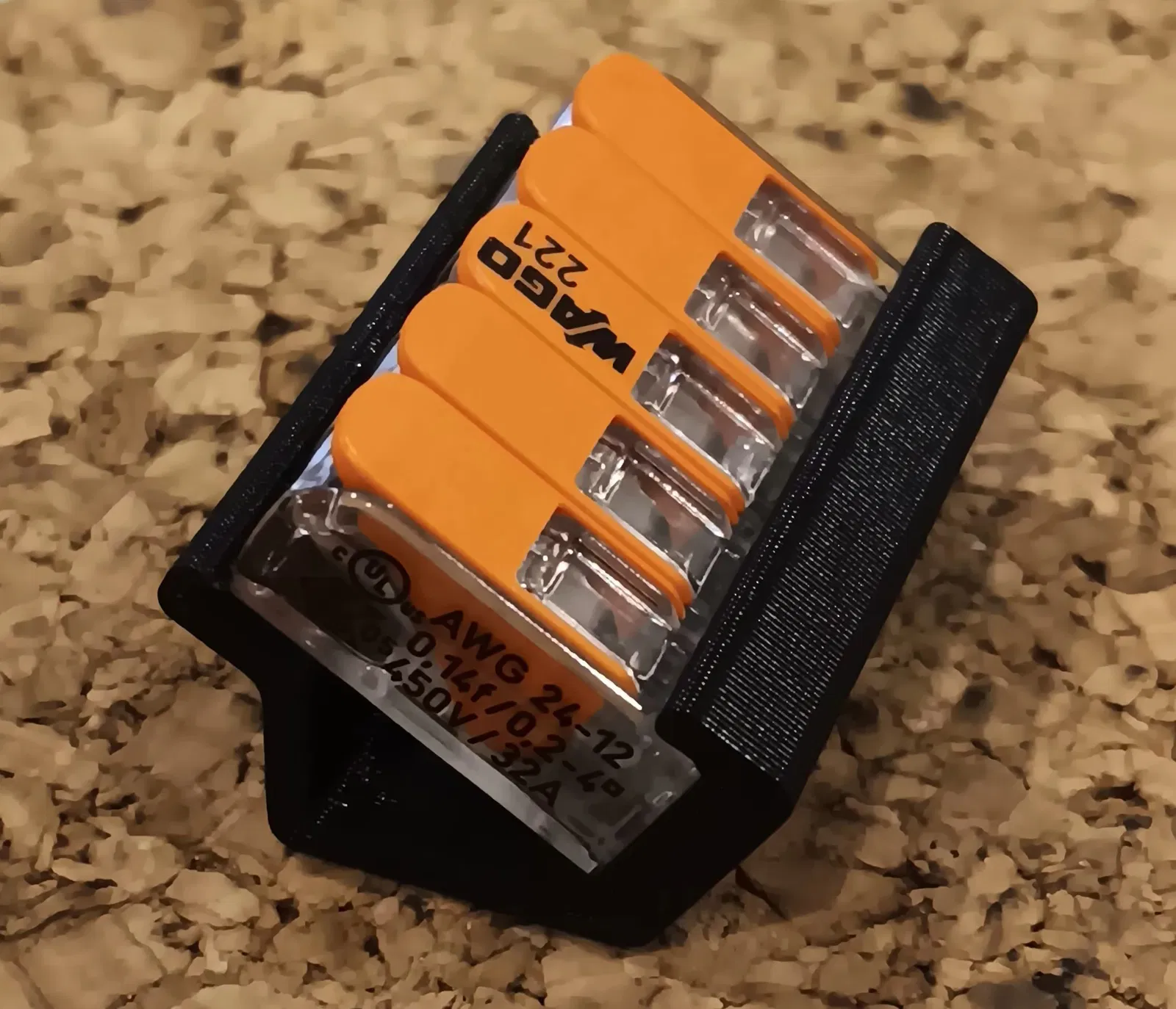 Phiên bản của riêng tôi dựa trên đế góc Wago rất phổ biến. Phiên bản này có gờ giữ ở mặt sau để Wago không bị trượt ra ngoài. Ngoài ra, tôi nghĩ tất cả các phiên bản khác đều là đế đôi.