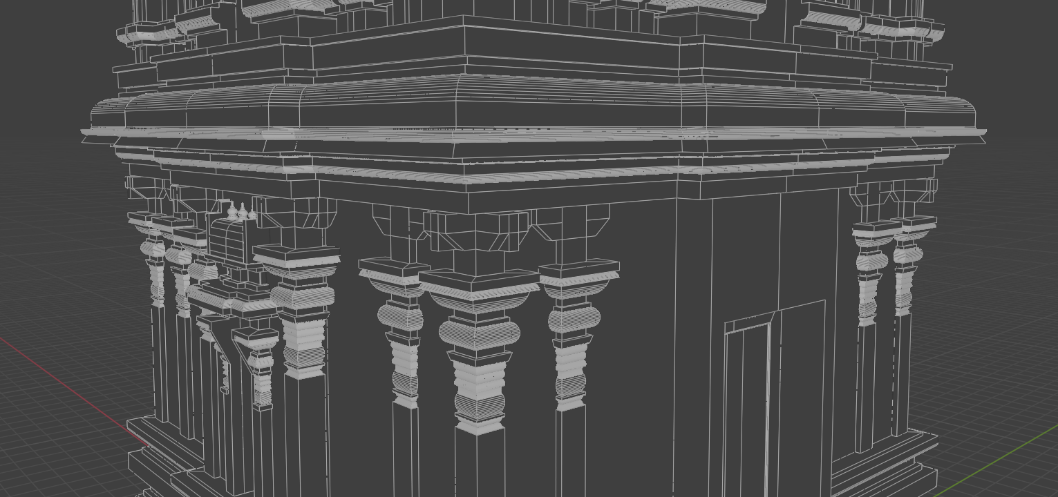 Mang sự hùng vĩ của kiến trúc đền miền Nam Ấn Độ vào bộ sưu tập 3D của bạn! Mô hình 3D chi tiết cao này đại diện cho kiểu gopuram/vimanam truyền thống với các chi tiết trang trí, cột trụ và yếu tố điêu khắc, hoàn hảo cho in 3D, trực quan hóa kiến trúc, tài sản game, và nhiều hơn nữa.