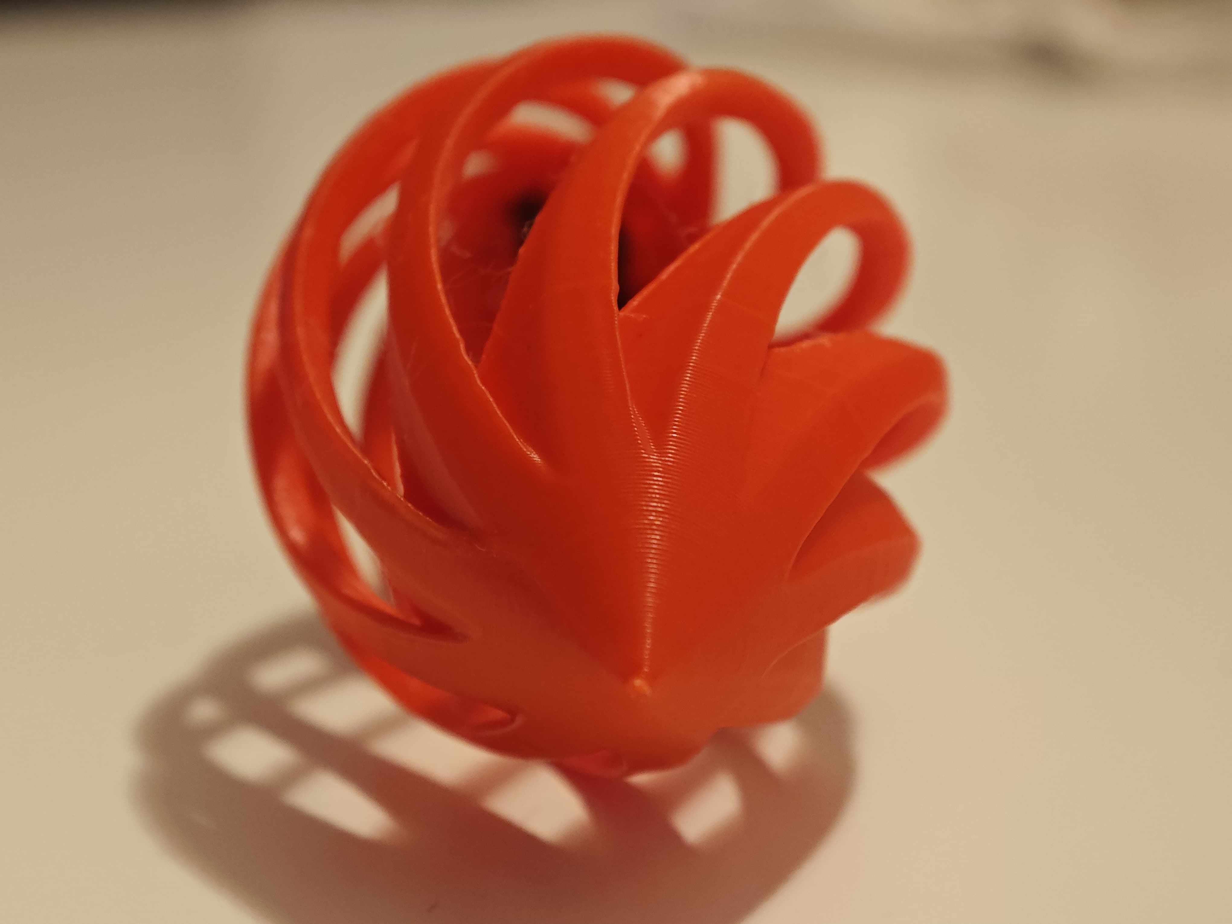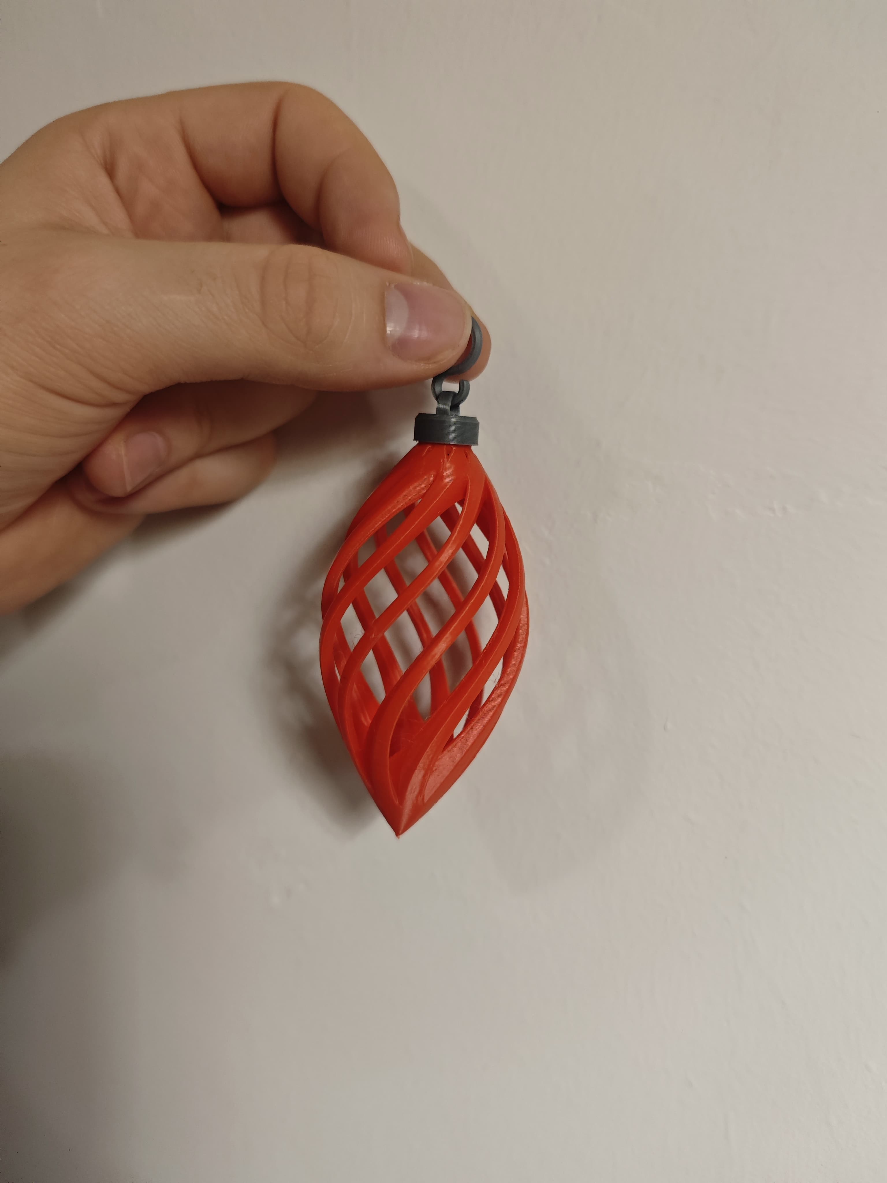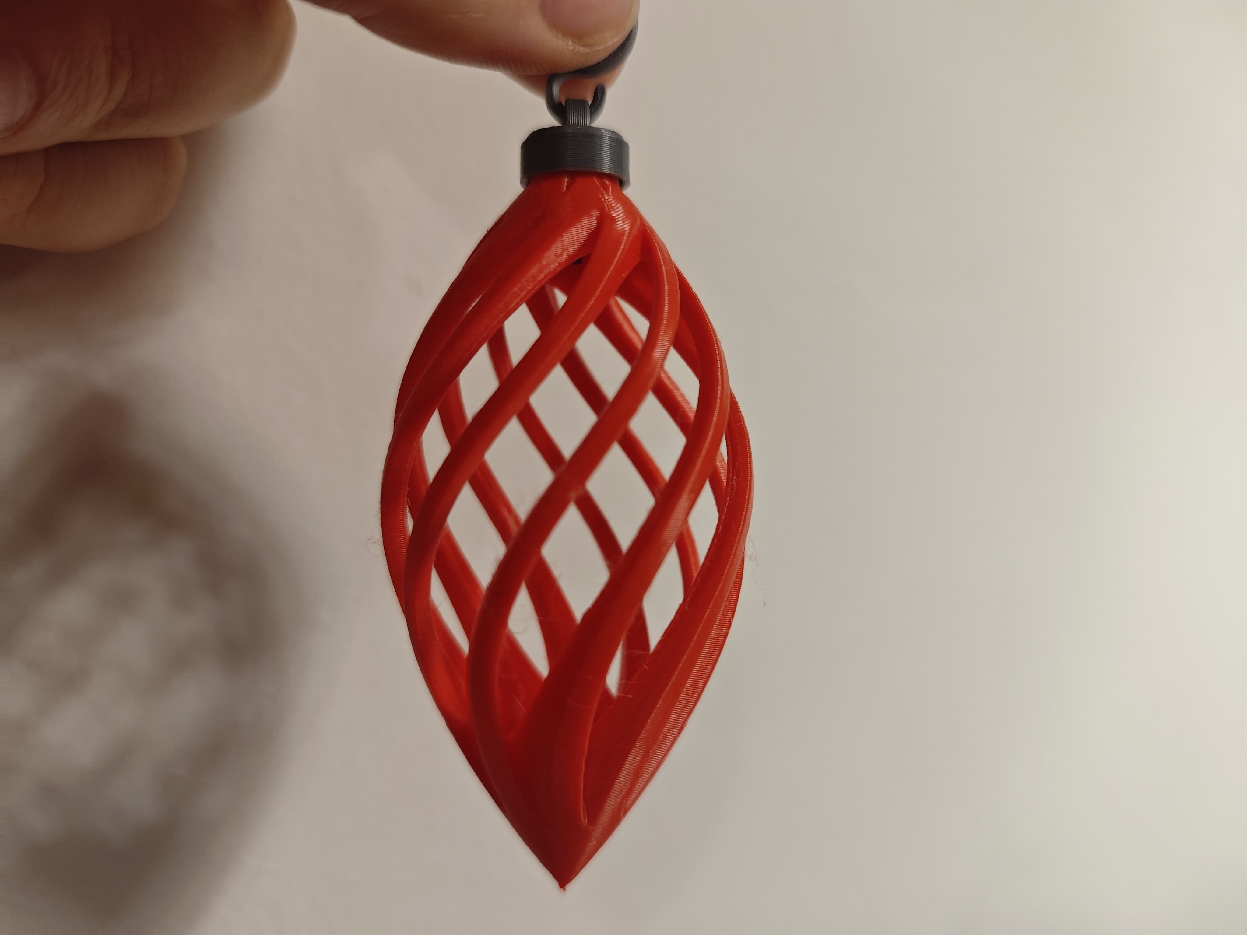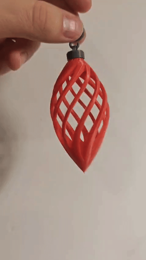 Thiết kế hôm nay tiếp tục chủ đề lễ hội với một quả châu Giáng sinh khác. Cái này có hình bầu dục hơn và có họa tiết xoắn ốc được tạo thành từ các đường hở riêng lẻ, tạo cho nó một cái nhìn xuyên thấu, thoáng đãng ✨. Quả châu in dễ dàng với cài đặt tiêu chuẩn — không cần chế độ bình hoa — và vẫn giữ được sự nhẹ nhàng trong khi vẫn tỏa sáng lấp lánh dịp lễ.