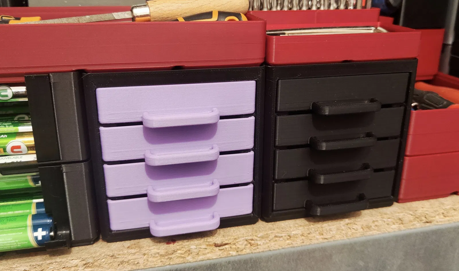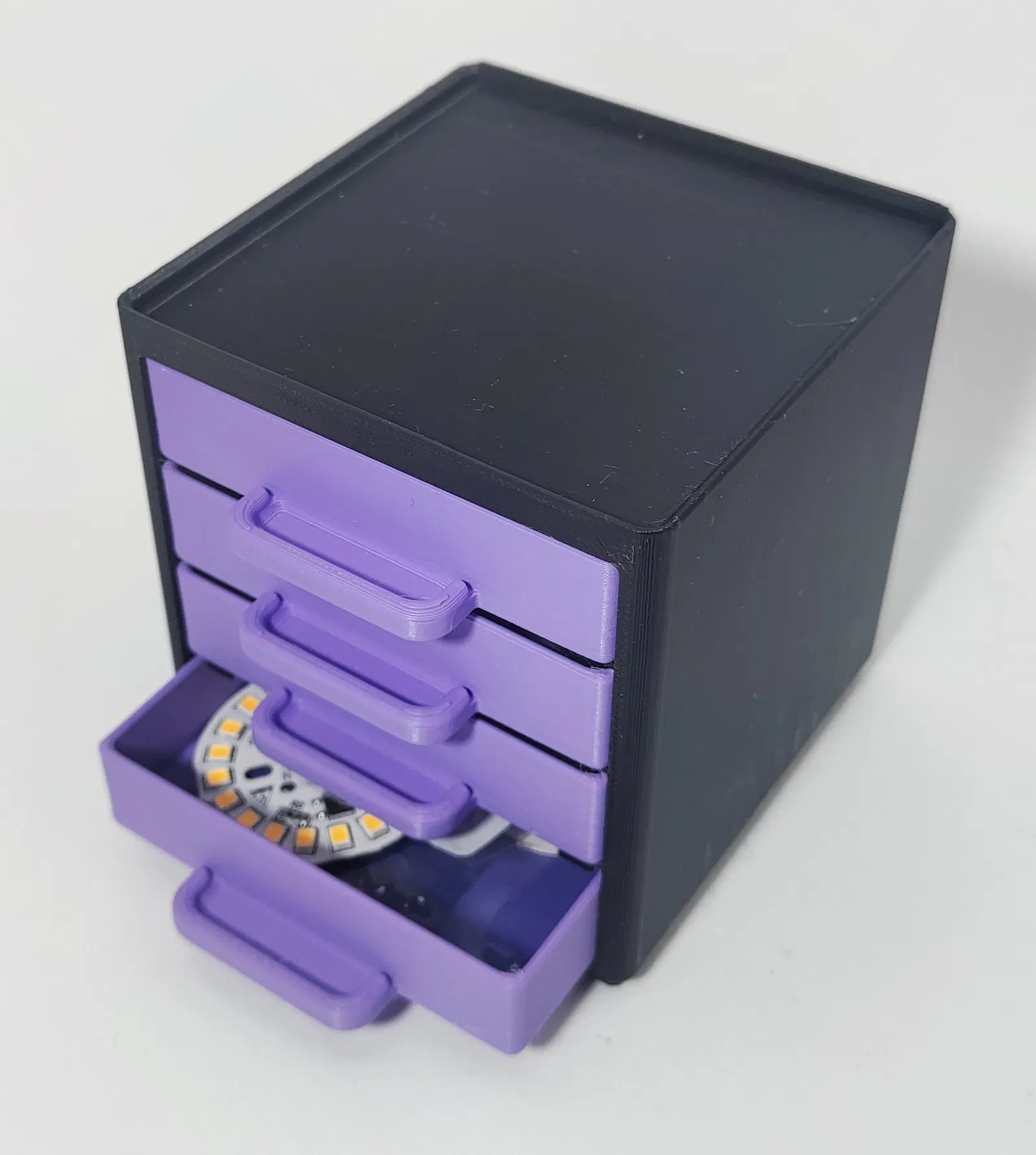 Đây là một khung Gridfinity 2x2x12, đi kèm với 4 hộc tủ tiện lợi. Mặt trước của mỗi hộc tủ được thiết kế có khoảng trống để bạn dễ dàng dán nhãn với kích thước 12mm, giúp việc sắp xếp và tìm kiếm đồ đạc trở nên đơn giản hơn bao giờ hết.