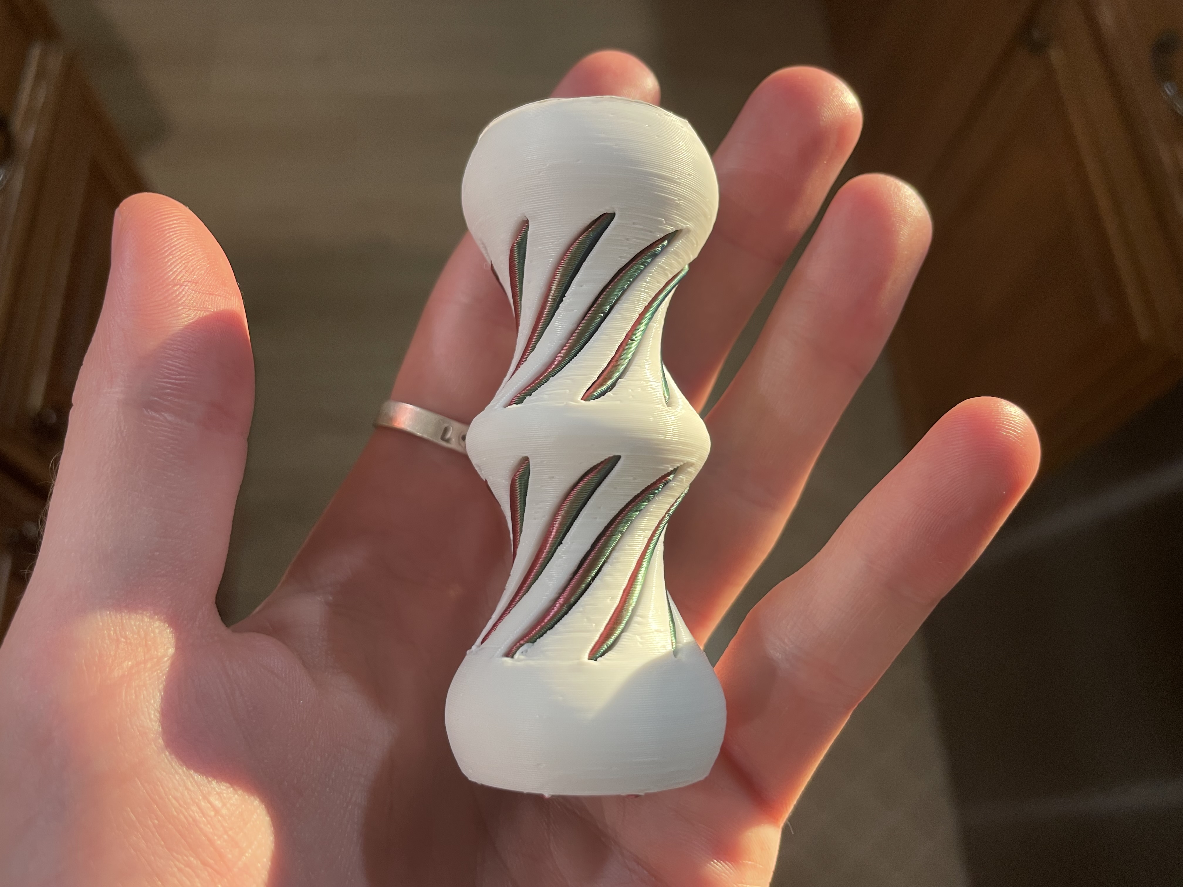 Một món đồ chơi xoáy vortex đẹp mắt mà tui đã thiết kế trong Fusion 360. Tui khuyên bạn nên in nó bằng hai màu để tạo độ tương phản đẹp mắt.