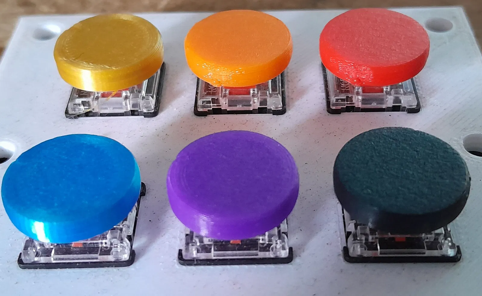 Mô tả: Keycap Cherry MX Low Profile cho Redragon ZT04-red. In trên nhiều loại sợi filament 3D Pen khác nhau từ Overture3D (Amazon). Keycap tròn đơn giản cho Công tắc cơ ZT04-Red Low Profile, bán trên Alixpress.