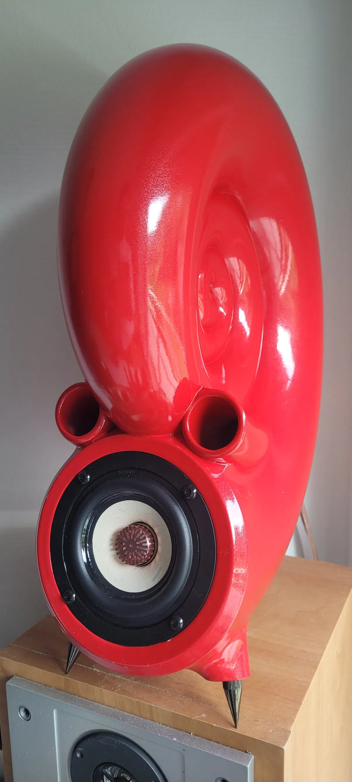 Mô hình loa Nautilus cho củ loa toàn dải Tang Band W3-1878. Thùng loa dung tích 3.15 lít, cổng tune 89 Hz. Hỗ trợ bởi woofer Dayton Audio - TCP115-4. In bằng đầu phun 0.6 mm, lớp 0.18 mm. Có thể in chia đôi hoặc nguyên khối.