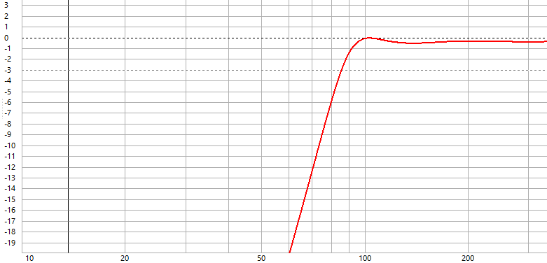 Cái thùng loa này có dung tích khoảng 3.15 lít. Cổng loa được chỉnh tần số xuống 89 Hz với một chút suy giảm đáp ứng ở trên tần số đó theo WinISD. Sự suy giảm này có thể được khắc phục bằng equalizer ở 175 Hz +1.5 dB (Q=1.0). Với các cài đặt này, độ lệch của màng loa dưới 3.7 mm (tối đa 4.2 mm) và vận tốc gió dưới 22 m/s. Các loa toàn dải được hỗ trợ bởi loa woofer từ Dayton Audio - TCP115-4.
