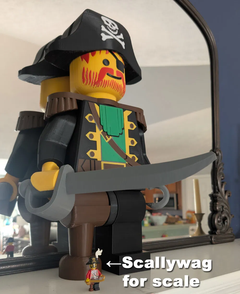 Tạo bản sao phóng to 10 lần của thanh kiếm cướp biển Lego kinh điển cho mô hình Captain Redbeard khổng lồ. Bản in hoàn chỉnh dài 300mm, với các tùy chọn chia đôi để phù hợp với máy in nhỏ và giảm thiểu support.
