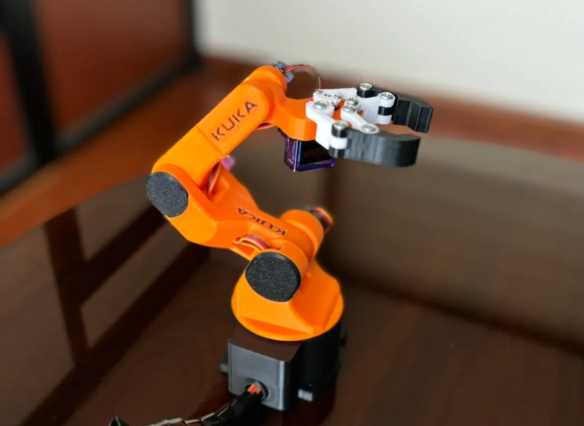 Đây là mô hình cánh tay robot KUKA 4DoF thu nhỏ, in nguyên khối. Thiết kế này lý tưởng để trưng bày, giáo dục hoặc tham khảo, mang tính thẩm mỹ của robot công nghiệp vào một phiên bản nhỏ gọn và dễ tiếp cận.
