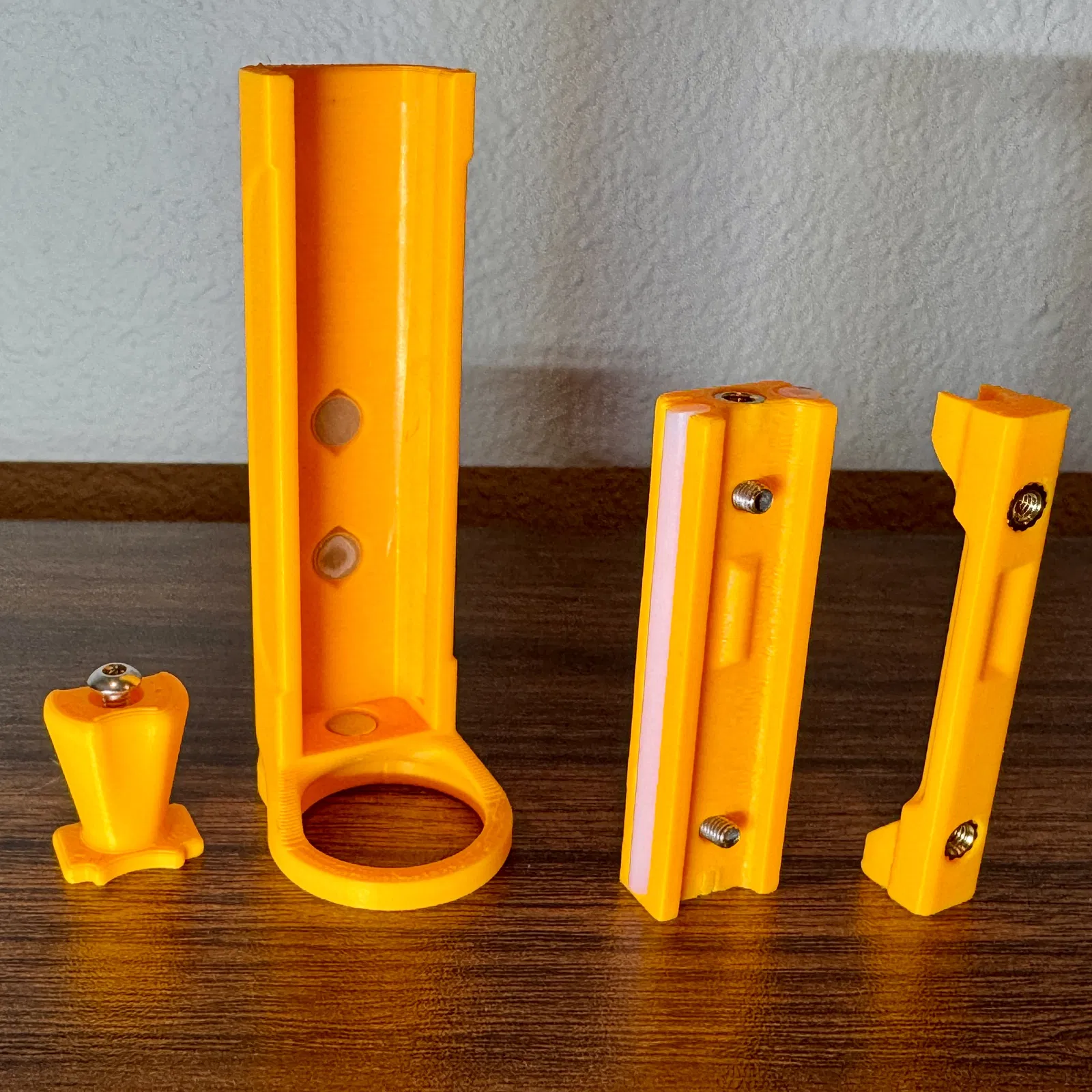 - Ép 3 nam châm vô. Cực tính phải được căn chỉnh sao cho cả ba nam châm đều hút với các nam châm tương ứng trên cần trượt.