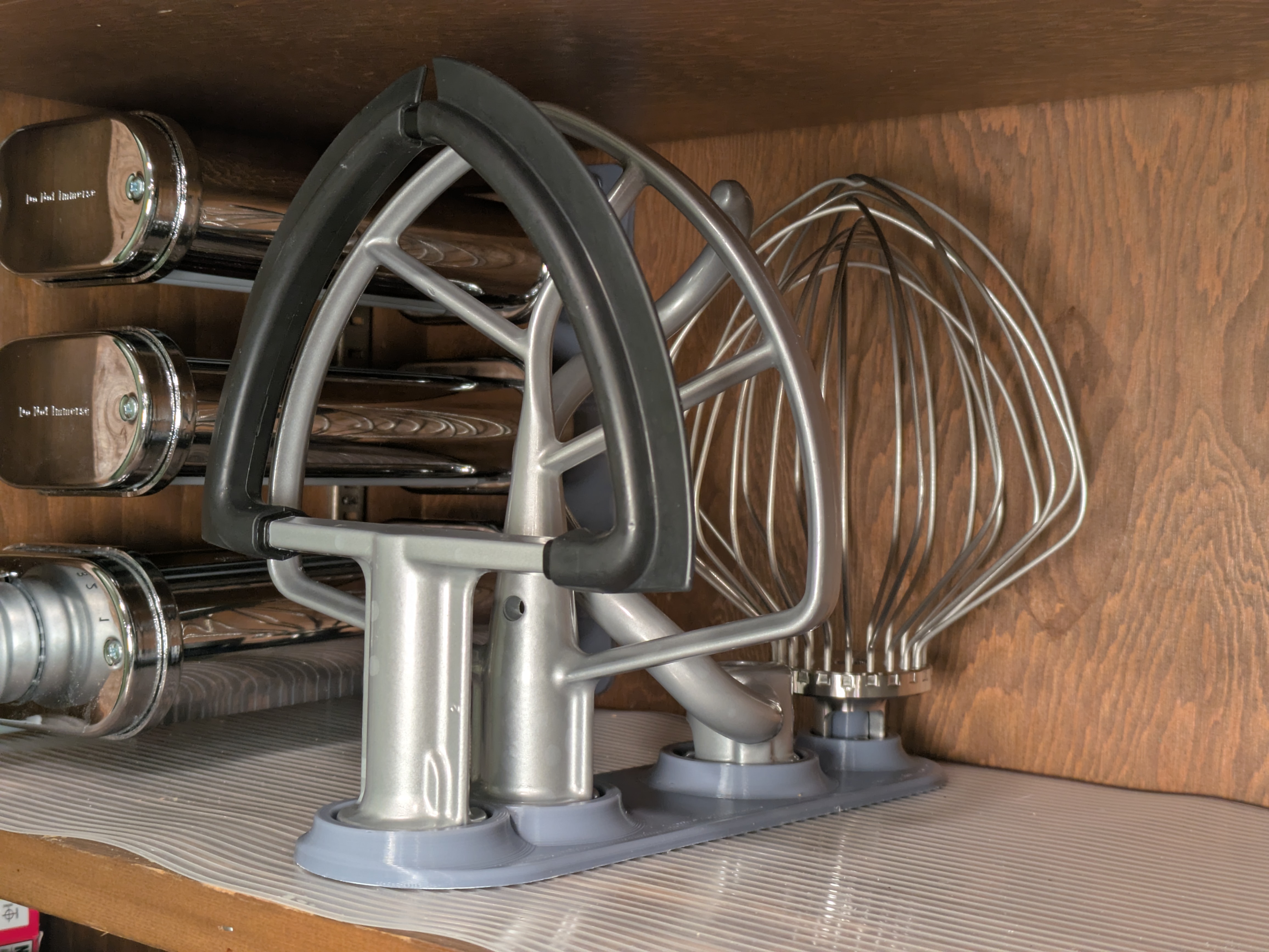 Cái đế in 3D đơn giản, dễ in, để giữ 4 cái phụ kiện máy trộn Kitchenaid loại nâng tô đứng gọn gàng trong tủ nhà tui nè. Giúp tiết kiệm không gian và giữ chúng ngăn nắp.