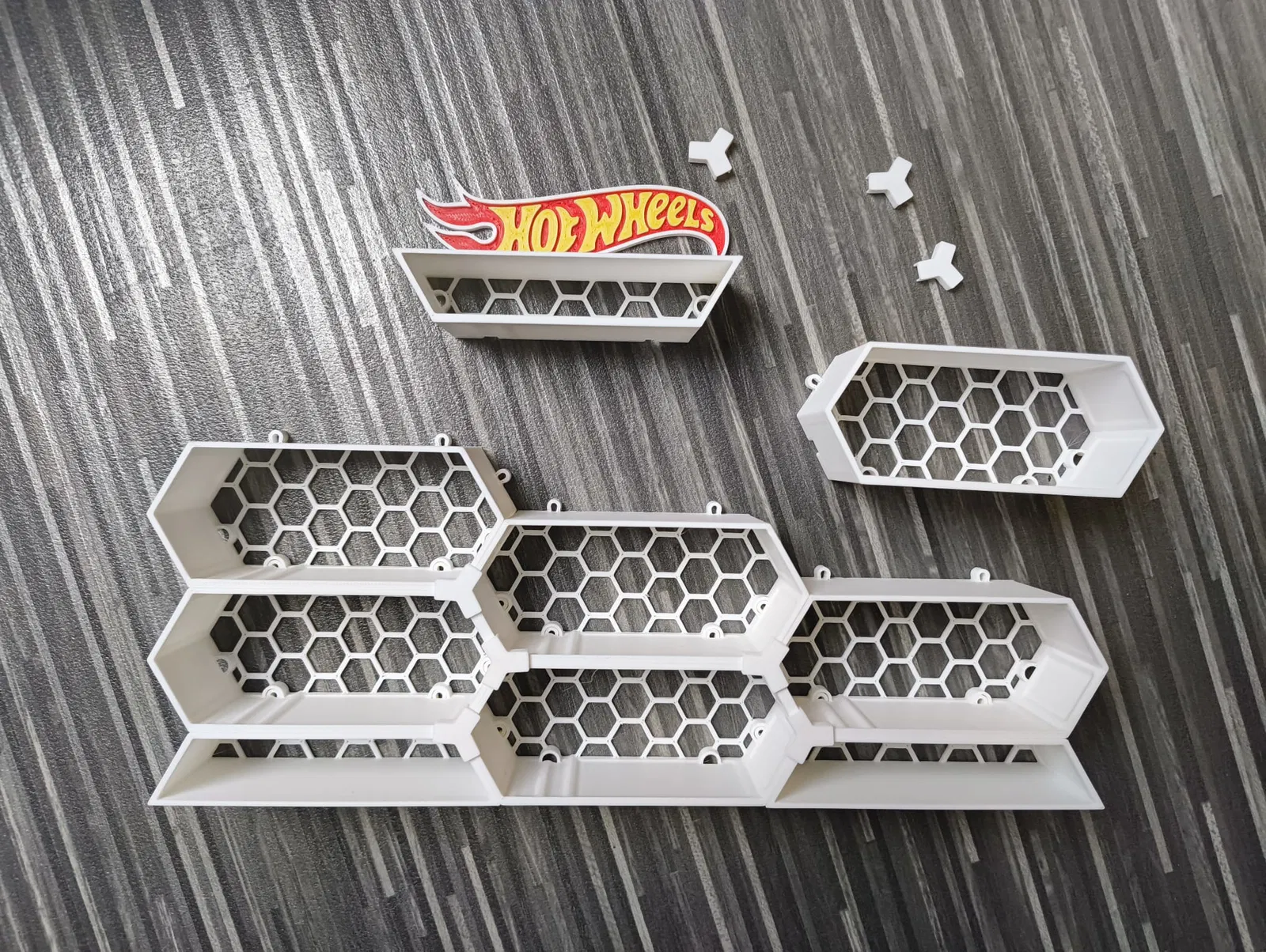 Hộp đựng xe Hot Wheels, mỗi hộp có thể ghép nối với hộp khác để tạo bộ sưu tập không giới hạn. Tôi đang có hơn 70 cái trên tường nè! Dễ dàng sắp xếp và thêm chỗ trống cho bộ sưu tập.