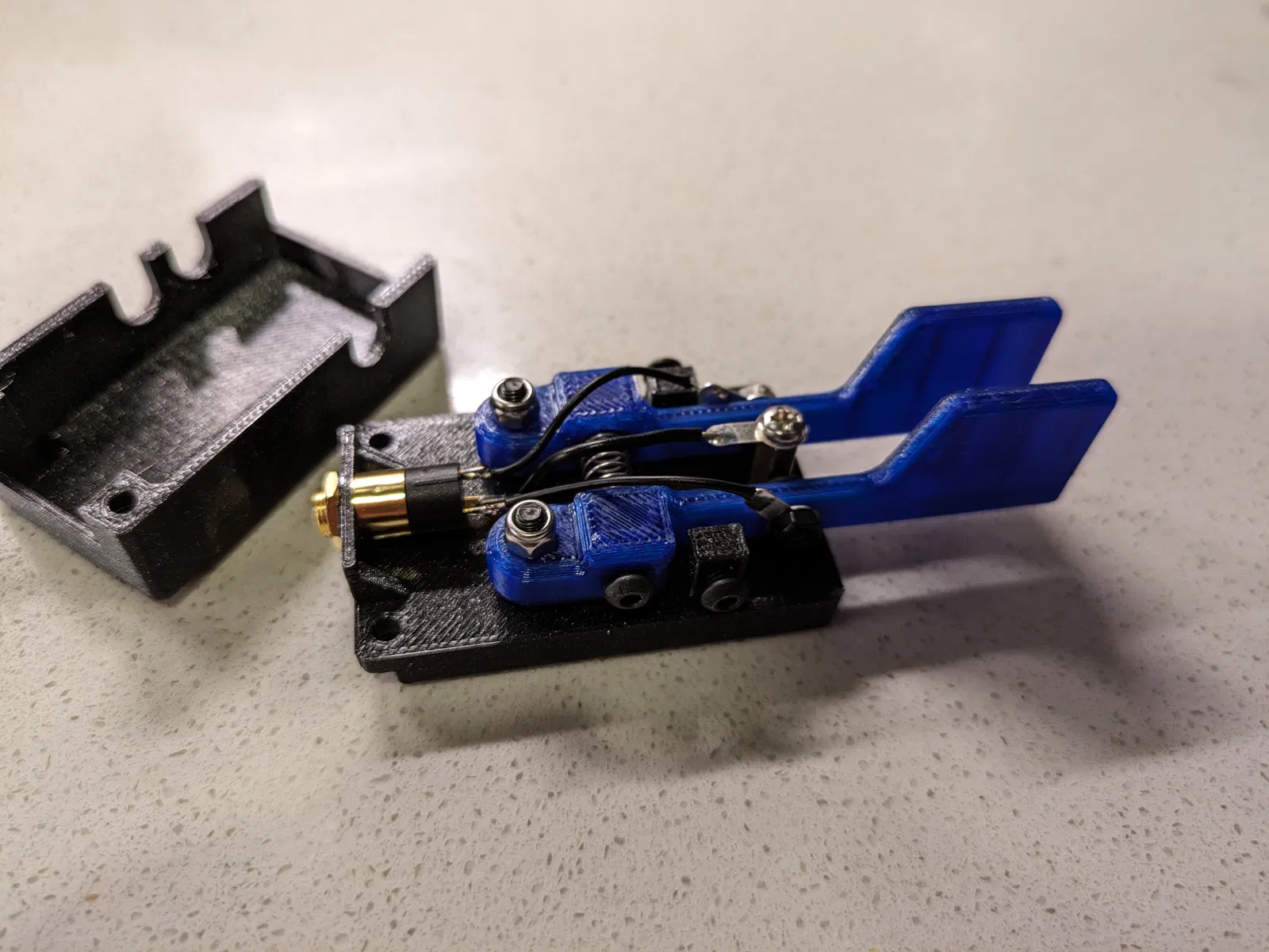Tui khuyên bạn nên in bằng PETG để có độ bền cao, nhưng nếu thích thì bạn vẫn có thể in bằng PLA nha. Nếu in bằng PETG, bạn nhớ thêm brim cho các cần gạt và thêm support enforcer cho hai góc của đế và nắp. Đừng thêm support vào các lỗ vít khác trên đế vì sẽ khó tháo lắm đó. (Nếu thấy khó hiểu thì mở file 3mf trong PrusaSlicer để xem tui làm sao nha)