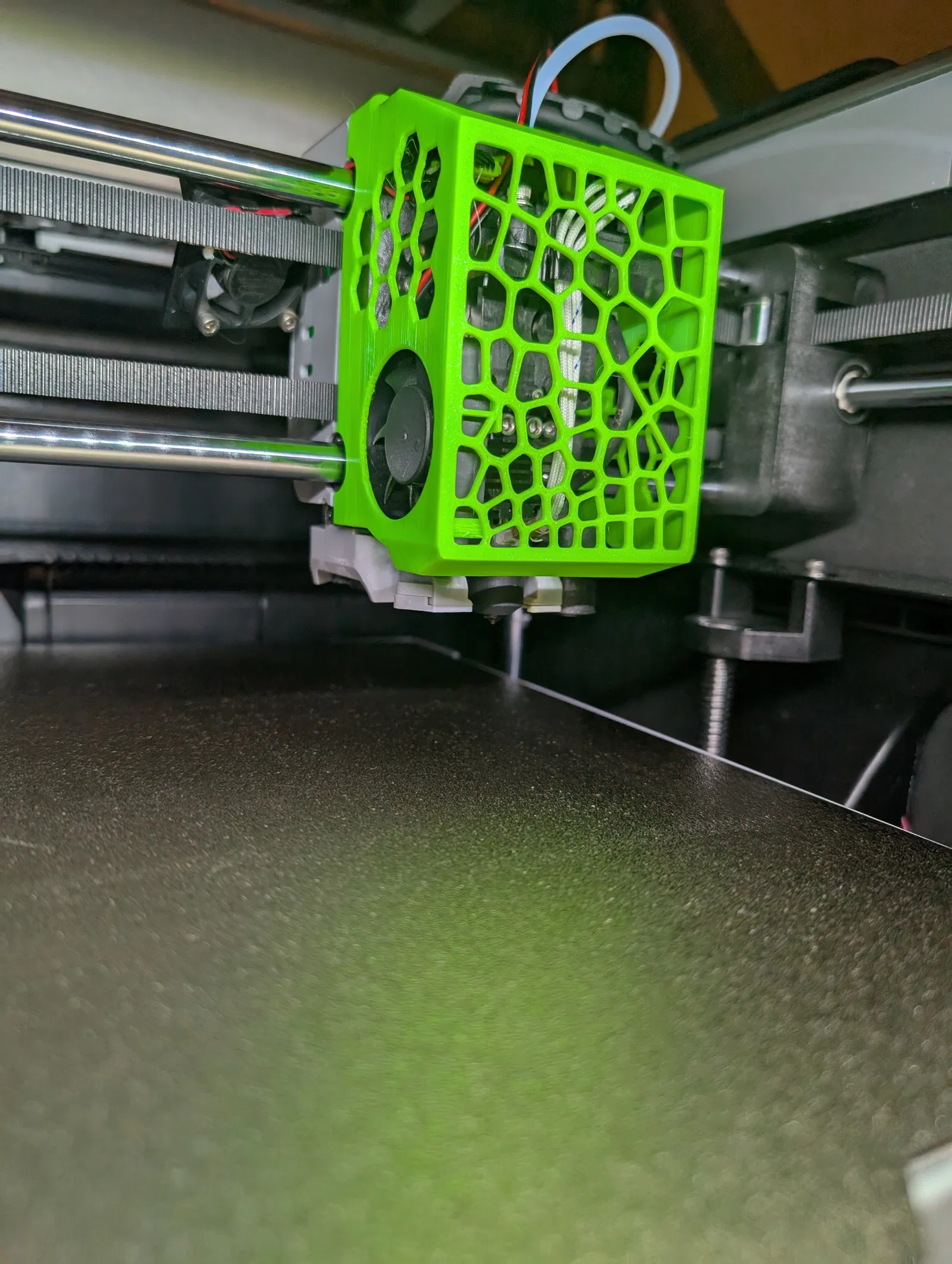 Một bộ phận che đầu phun theo phong cách voronoi với phiên bản quạt 4010 tùy chọn. Thay thế quạt zin bằng quạt 4010 giúp giảm tiếng ồn đáng kể. Cần dùng hai nam châm 4x1.5mm để gắn che vào đầu phun. Nam châm được ép chặt, nếu cần thì dùng mũi khoan để làm lỗ lớn hơn một chút. Tôi ép chúng vào bằng một cặp kìm. Ban đầu, tôi lấy ý tưởng về quạt 4010 từ Kameo. Nếu bạn không muốn dùng tùy chọn 4010, tôi đề xuất bạn sử dụng này để giảm thiểu hiện tượng quá nhiệt vì cả hai tùy chọn này đều hoạt động rất tốt. Tôi cũng đã tải lên một tệp step của bộ phận che đầu phun Qidi zin trống để bạn tự thiết kế bộ phận che đầu phun của mình, và cả tệp step mà tôi giữ nguyên các lỗ thông gió. Chúc bạn vui!