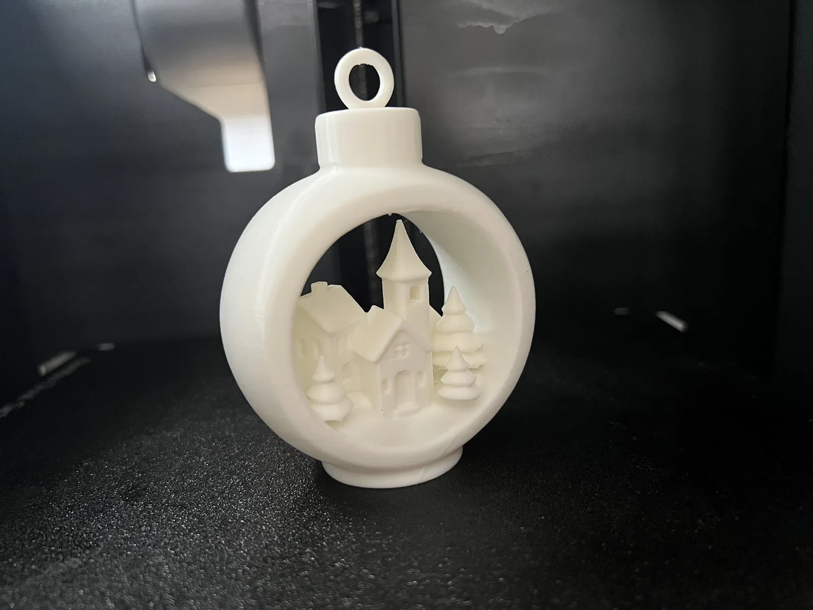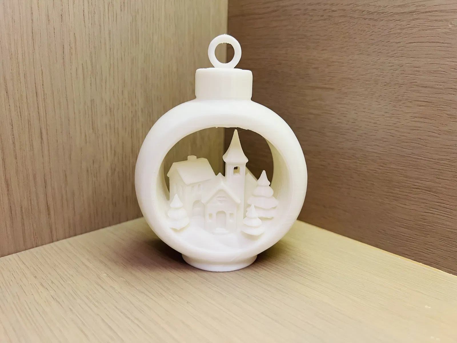 Một món đồ trang trí Giáng Sinh tinh xảo với khung cảnh làng quê ấm cúng gồm nhà cửa, nhà thờ và cây thông bên trong khung tròn – hoàn hảo để treo cây thông, cửa sổ, hoặc làm quà tặng nhỏ 🎁