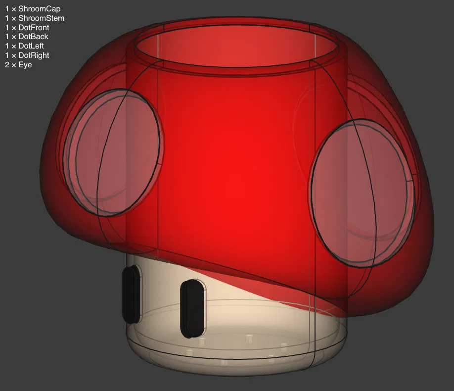 Chậu nhỏ kiểu nấm trong game Mario. Hướng dẫn chi tiết cách in, vật liệu và lắp ráp. Tất cả file STL đã sẵn sàng, chỉ cần in và dán lại với keo. Vật liệu PLA được đề xuất với màu sắc tươi sáng cho một món đồ trang trí độc đáo.