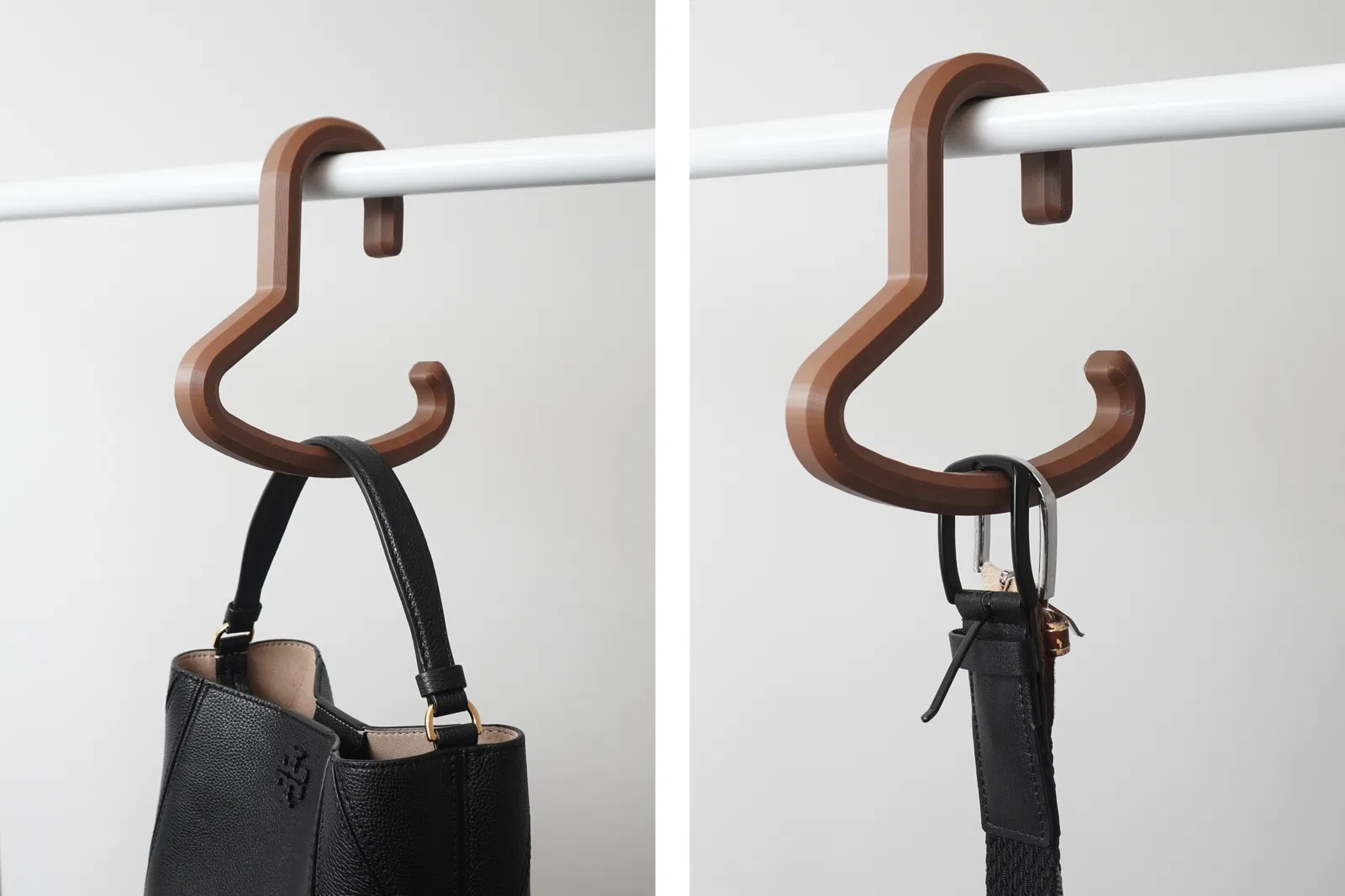 Cái móc treo nhỏ gọn này dùng để treo và cất giữ gọn gàng những món đồ như nón hay thắt lưng trong tủ quần áo. Nó đủ chắc chắn để treo cả những túi xách nhẹ nữa.