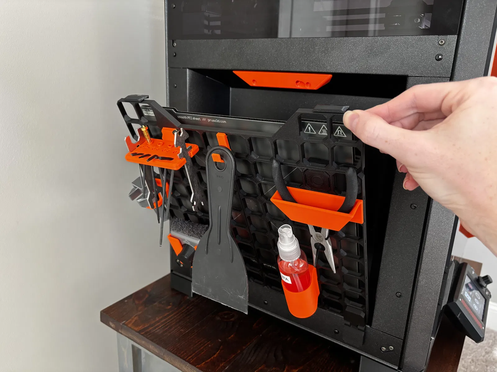 Cái Prusa Core One có một khoang bên hông rất thích hợp để tùy biến và lưu trữ phụ kiện. Hệ sinh thái openGrid là một lựa chọn tuyệt vời cho mục đích này thông qua sự kết hợp của các bộ phận gốc và khả năng tương thích với MultiConnect, HSW, MultiBoard và Gridfinity,