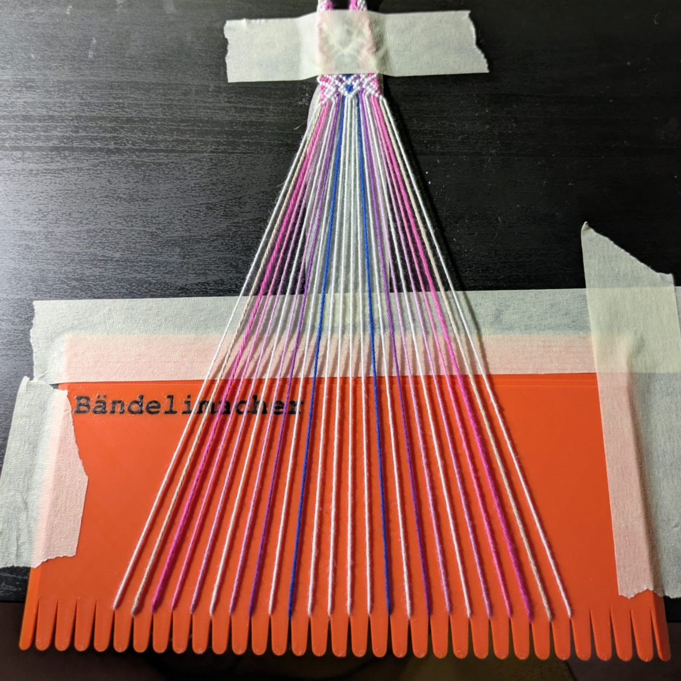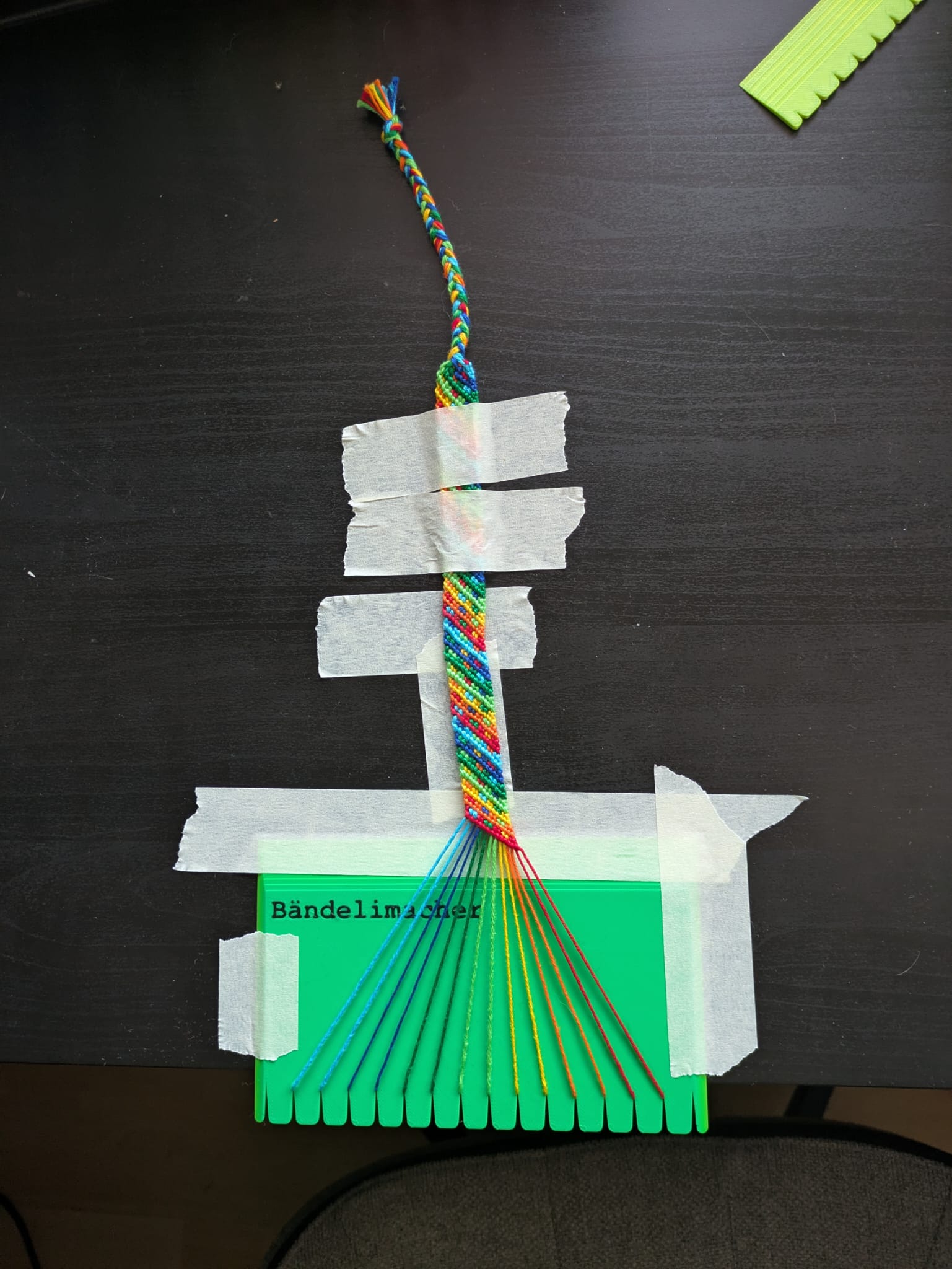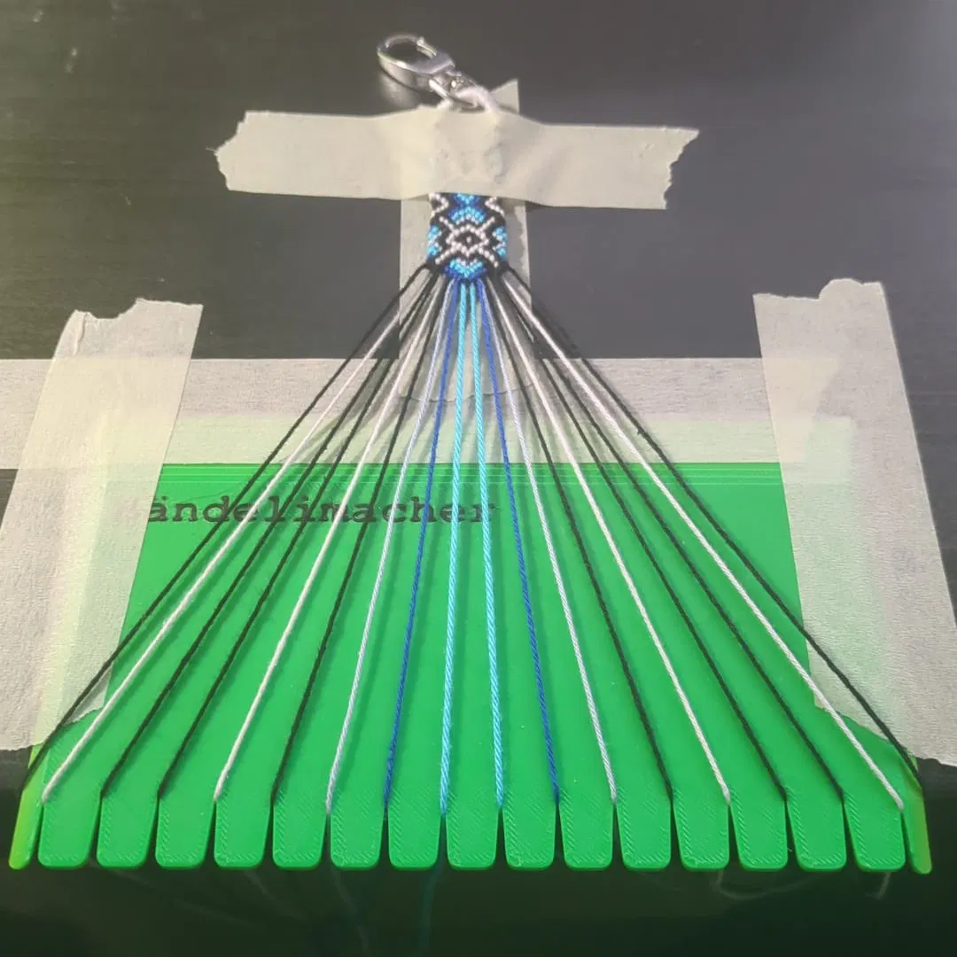 Máy làm vòng tay tự chế, có phiên bản 16 và 32 sợi. "Bändelimacher" là tiếng Thụy Sĩ Đức cho "máy làm vòng tay". Dụng cụ giữ sợi để làm vòng tay tình bạn.