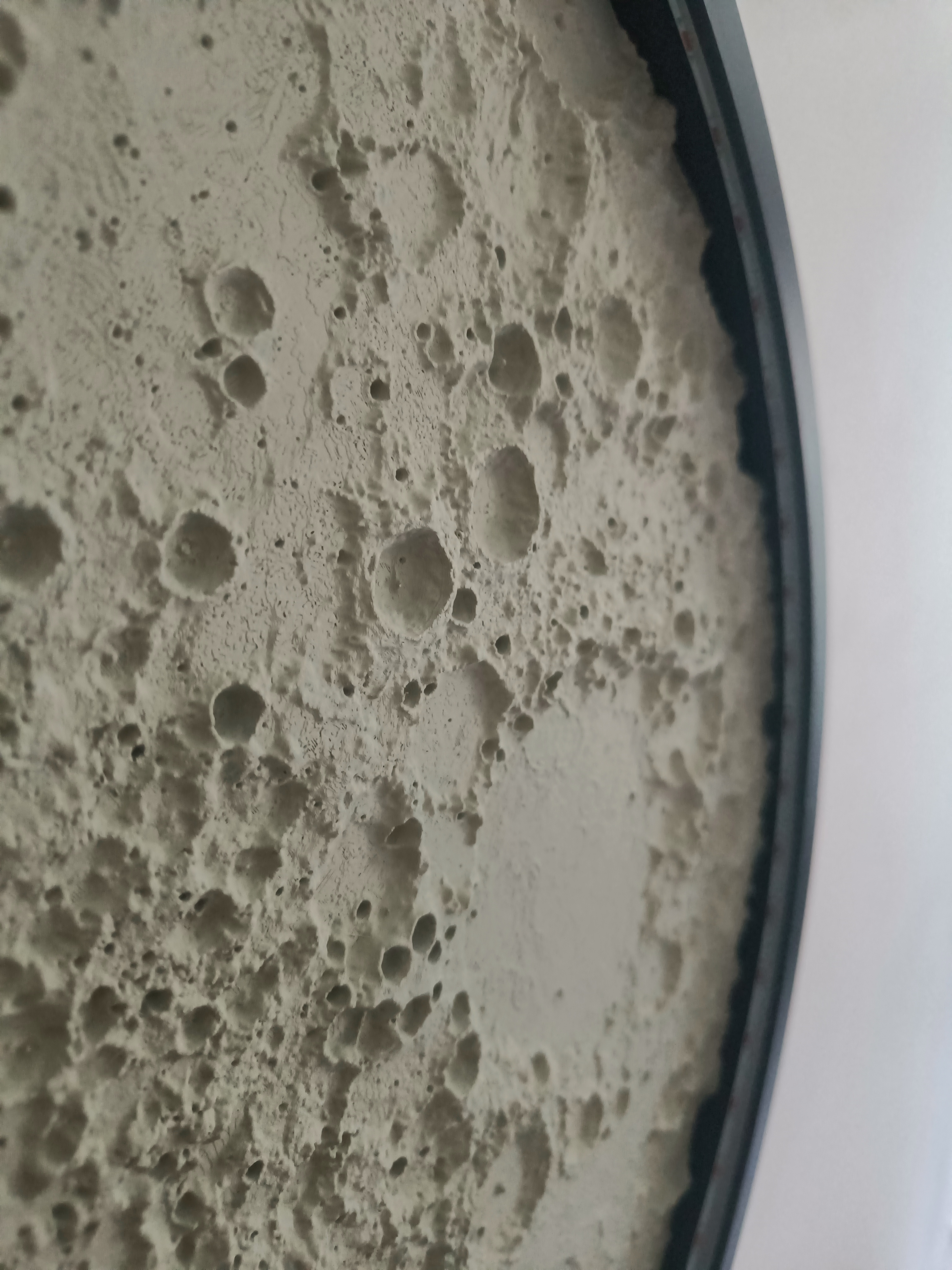 Tôi muốn Mặt Trăng lớn hơn và mang tính trang trí cao hơn. Bây giờ Mặt Trăng được chia thành bốn phần và có đường kính gần nửa mét. Ngoài ra, tôi đã làm một khung mới ít lộ hơn và phù hợp với Mặt Trăng đã sửa đổi.