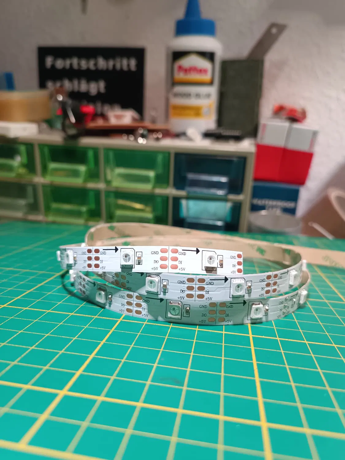 - Cắt Dải LED theo chiều dài phù hợp (21 đèn LED cho kích thước mặc định)