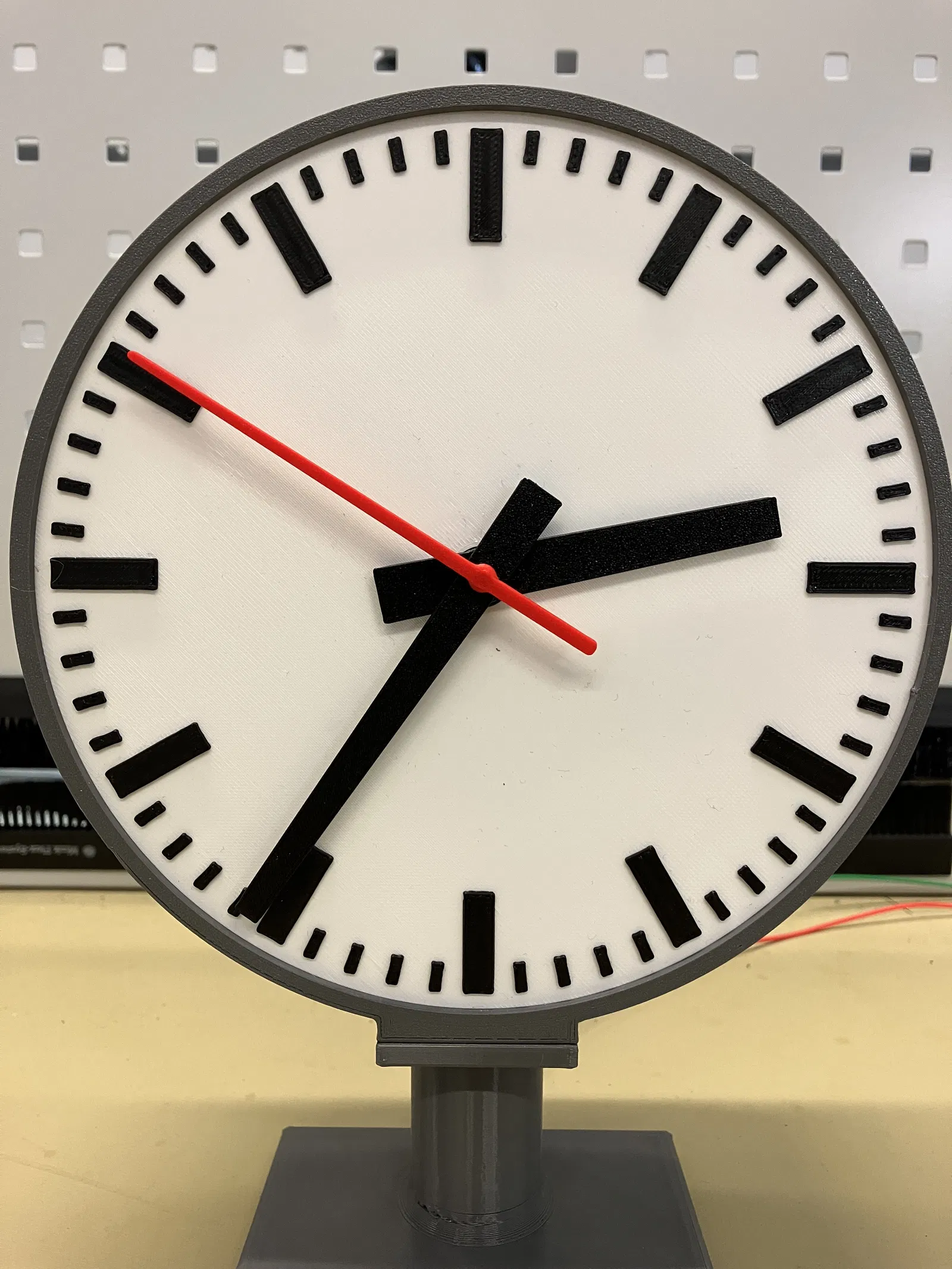 Thế là tui quyết định tự làm một chiếc đồng hồ lấy cảm hứng từ đồng hồ Ga Tàu Thụy Sĩ nổi tiếng, với kích thước vừa phải ai cũng có thể tự làm được nếu có chút kiến thức điện tử và máy in 3D. Mọi bộ phận đều có thể in bằng máy Prusa Mini hoặc máy in khác có bàn in ít nhất 18x18cm.