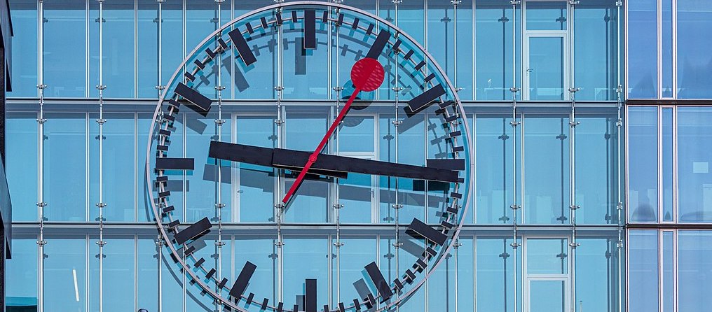 Nhịp dừng nổi tiếng khi kim giây chạm mốc phút bắt nguồn từ yêu cầu kỹ thuật thời kỳ đầu của đồng hồ. Hilfiker muốn tất cả các đồng hồ ga tàu ở Thụy Sĩ phải được đồng bộ hóa. Để làm được điều này, đồng hồ nhận một xung thời gian qua cáp điện thoại mỗi phút từ đồng hồ chính trong phòng điều khiển tín hiệu Zurich. Tuy nhiên, việc đồng bộ hóa tất cả các đồng hồ ga tàu theo cách này mất 1,5 giây. Điều này cuối cùng đã dẫn đến sự ra đời của kim giây chỉ mất 58,5 giây để hoàn thành một vòng quay, sau đó dừng lại 1,5 giây trước khi bắt đầu vòng quay tiếp theo khi kim phút nhảy.