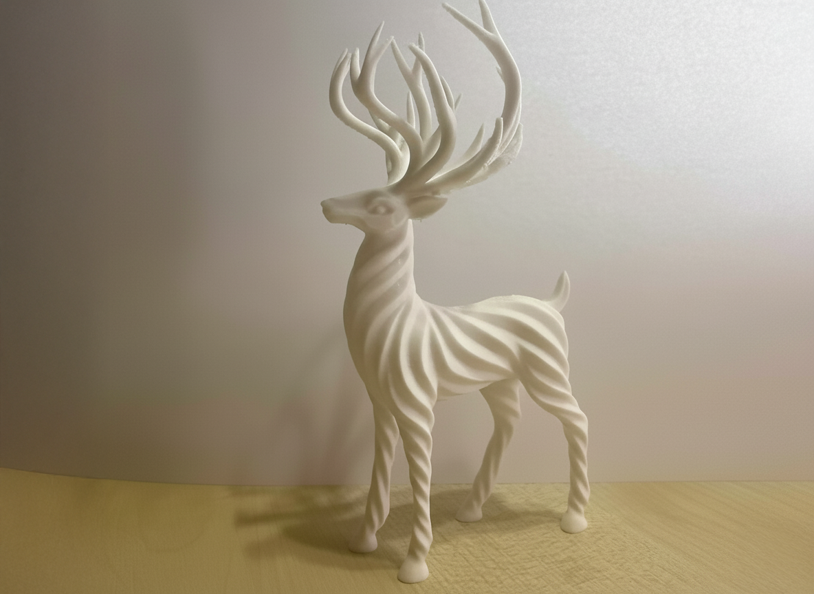 Trang trí hươu giáng sinh thanh lịch với thân xoắn ốc và gạc xoắn ấn tượng — lý tưởng để trưng bày hoặc trang trí dịp lễ. Thiết kế tinh tế, phù hợp với phong cách tối giản và kỳ ảo, có thể in theo nhiều kích cỡ khác nhau.