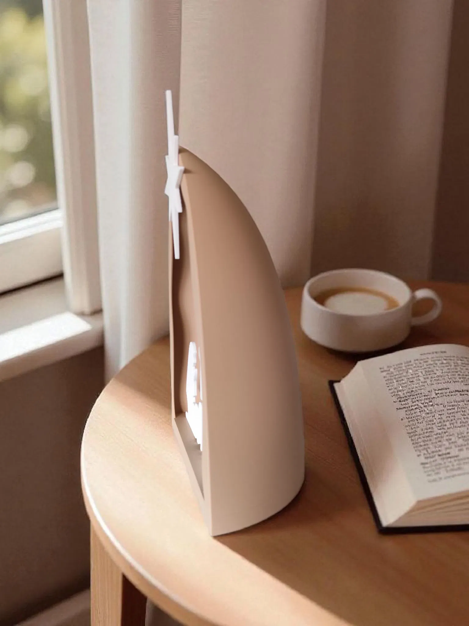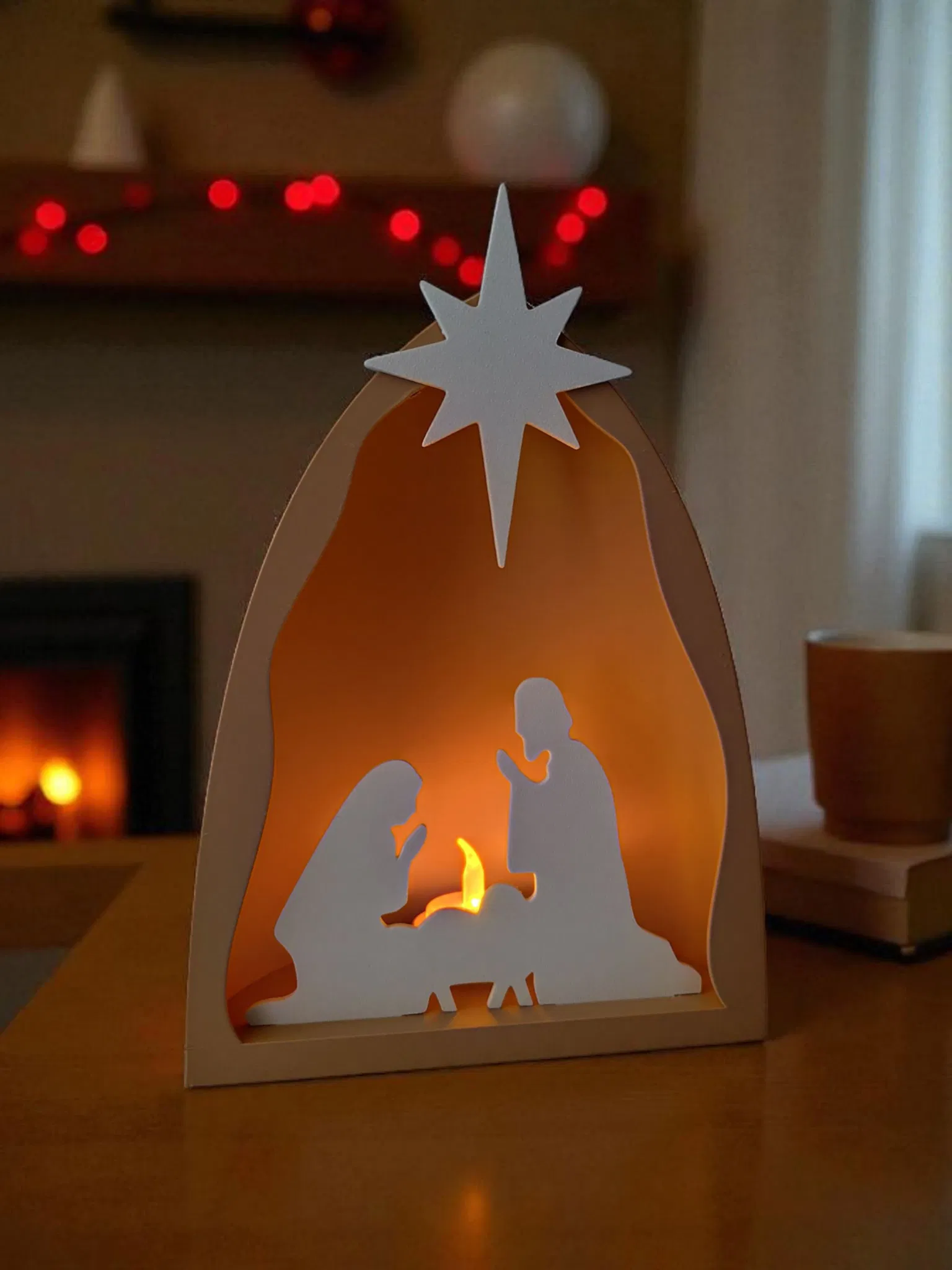 Với mô hình hôm nay, chúng ta hãy quay trở lại với tinh thần Giáng Sinh nhé! Tôi đã thiết kế một mô hình cảnh Chúa Giáng Sinh tối giản có đèn chiếu sáng, với không gian ở phía sau để đặt một đèn trà LED nhỏ. Phần thân được tạo hình theo cách bắt và khuếch tán ánh sáng tuyệt đẹp vào lúc chạng vạng hoặc trong bóng tối — tạo ra một ánh sáng êm dịu và thanh lịch. Tôi nghĩ nó sẽ là một vật trang trí Giáng Sinh thực sự quyến rũ. ✨